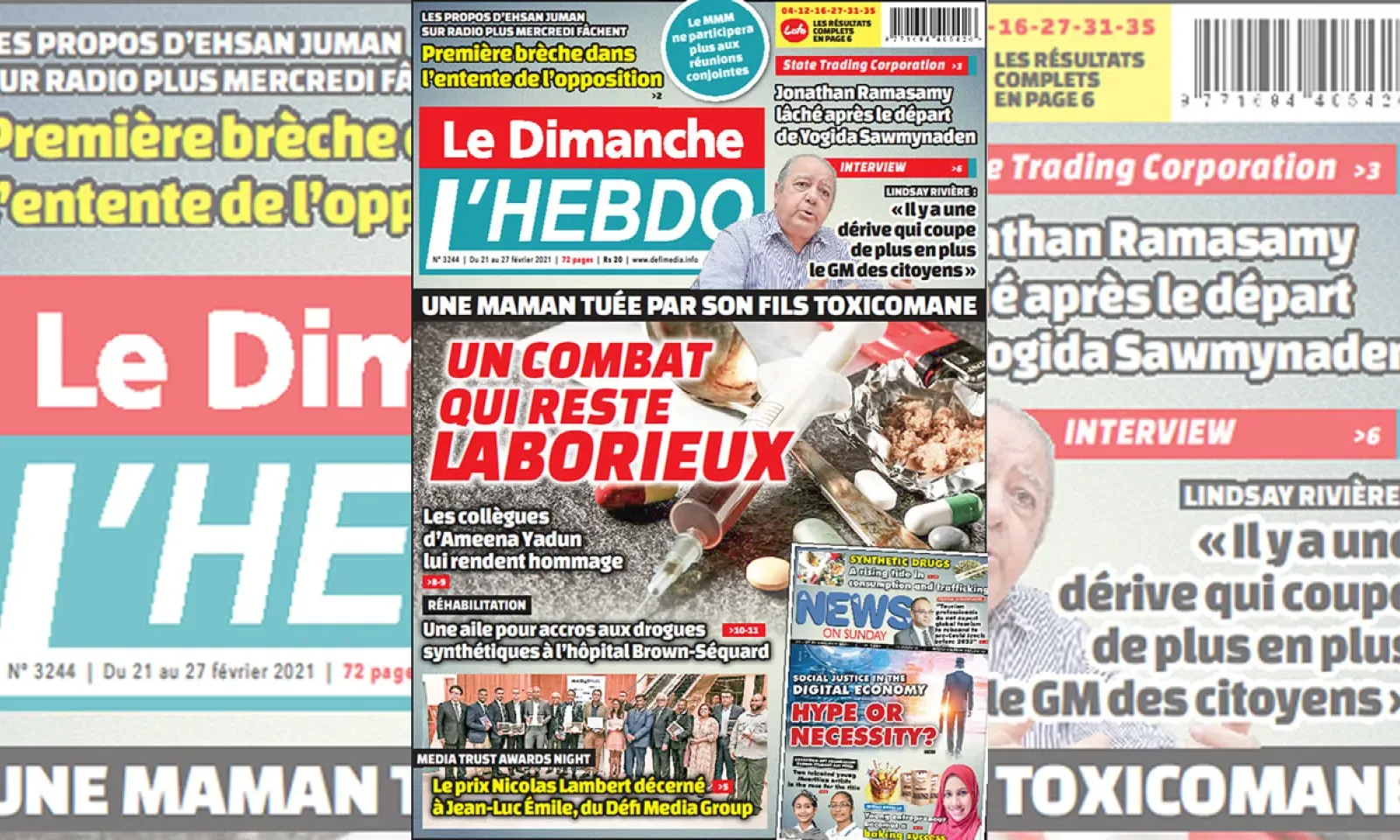 ? Voici la Une de Le Dimanche/L'Hebdo. Le journal est en vente à Rs 20 l'exemplaire aux endroits habituels (supermarchés, boutiques, tabagies, superettes). Bonne lecture !