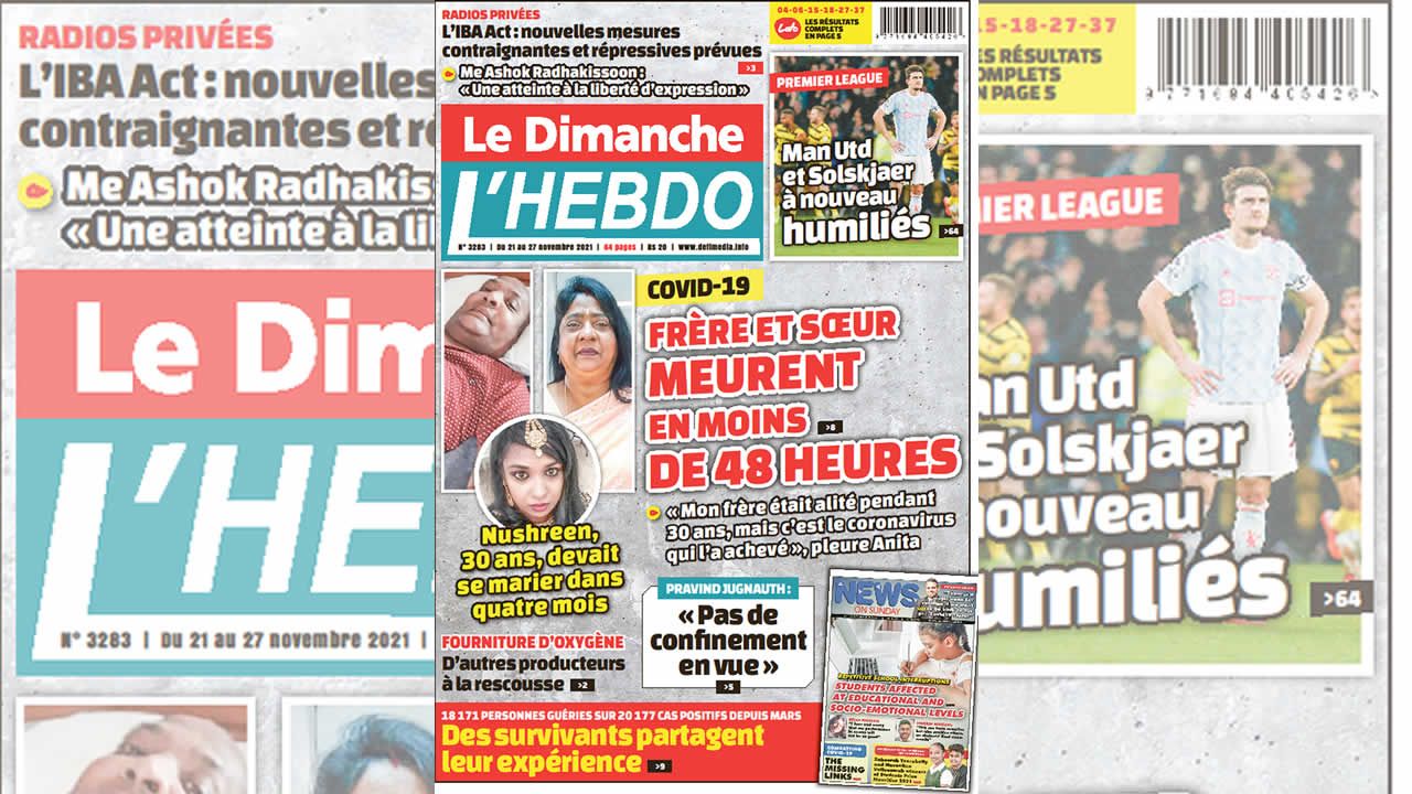 ? Voici la Une de Le Dimanche/L'Hebdo. Le journal est en vente à Rs 20 l'exemplaire aux endroits habituels (supermarchés, boutiques, tabagies, superettes). Bonne lecture !