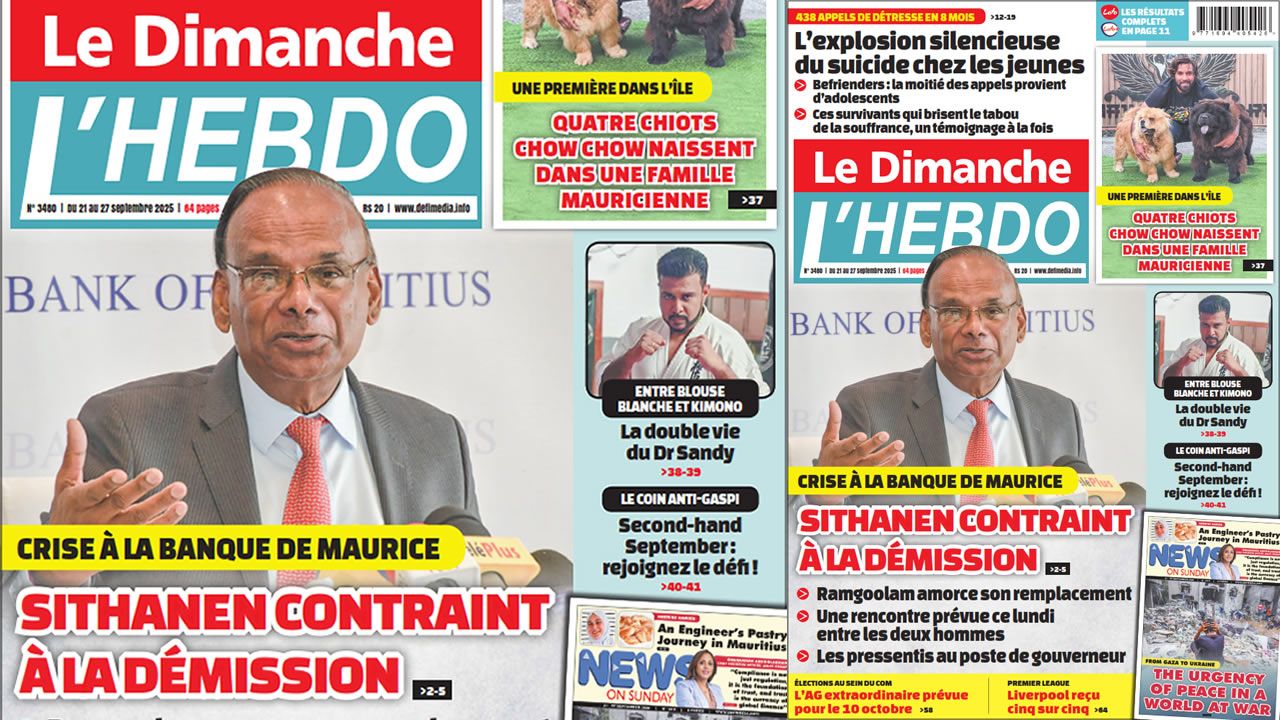 ? Voici la Une de Le Dimanche/L'Hebdo. Le journal est en vente à Rs 20 l'exemplaire aux endroits habituels (supermarchés, boutiques, tabagies, superettes). Bonne lecture !