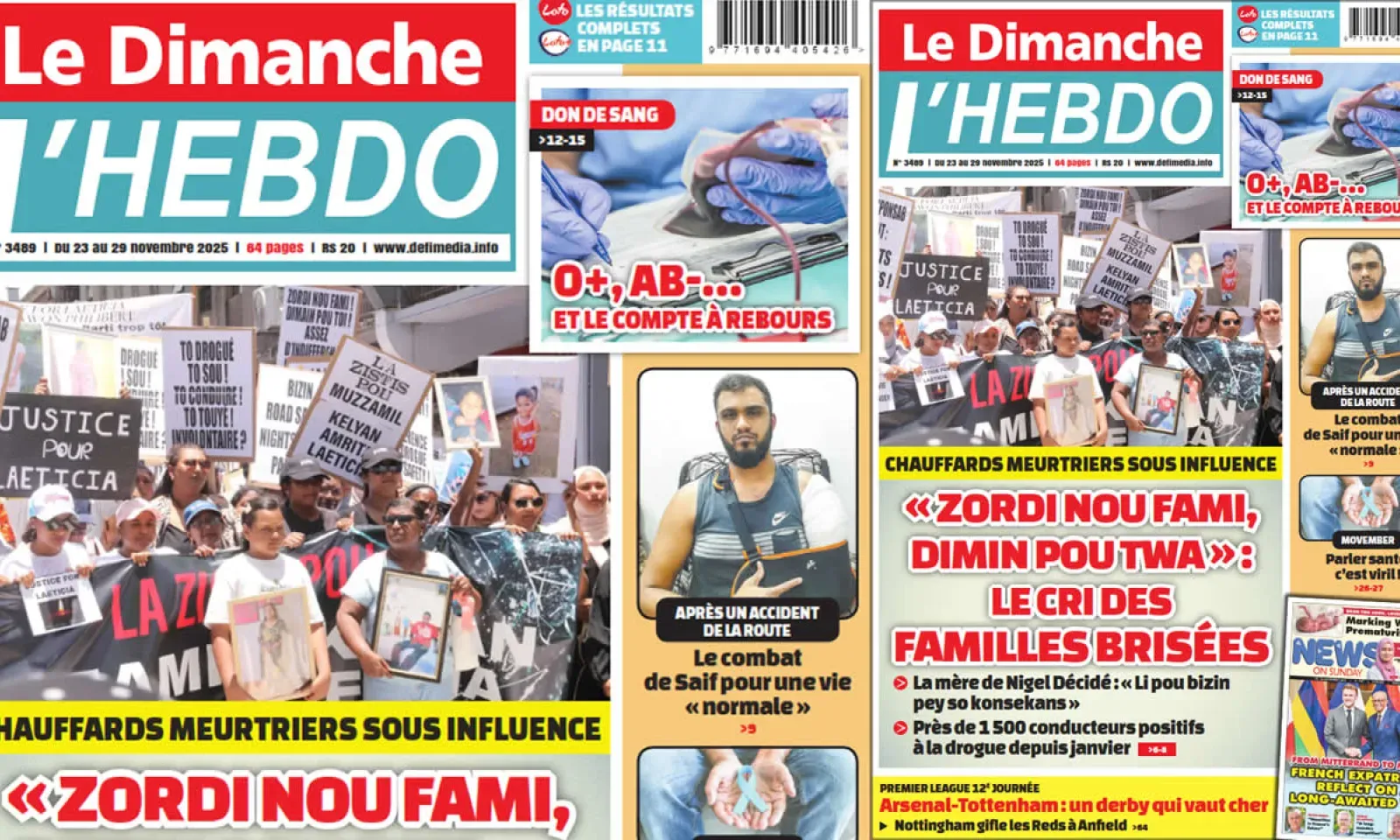 Image Voici la Une de Le Dimanche/L'Hebdo. Le journal est en vente à Rs 20 l'exemplaire aux endroits habituels (supermarchés, boutiques, tabagies, superettes). Bonne lecture ! Publicité View the discussion thread.