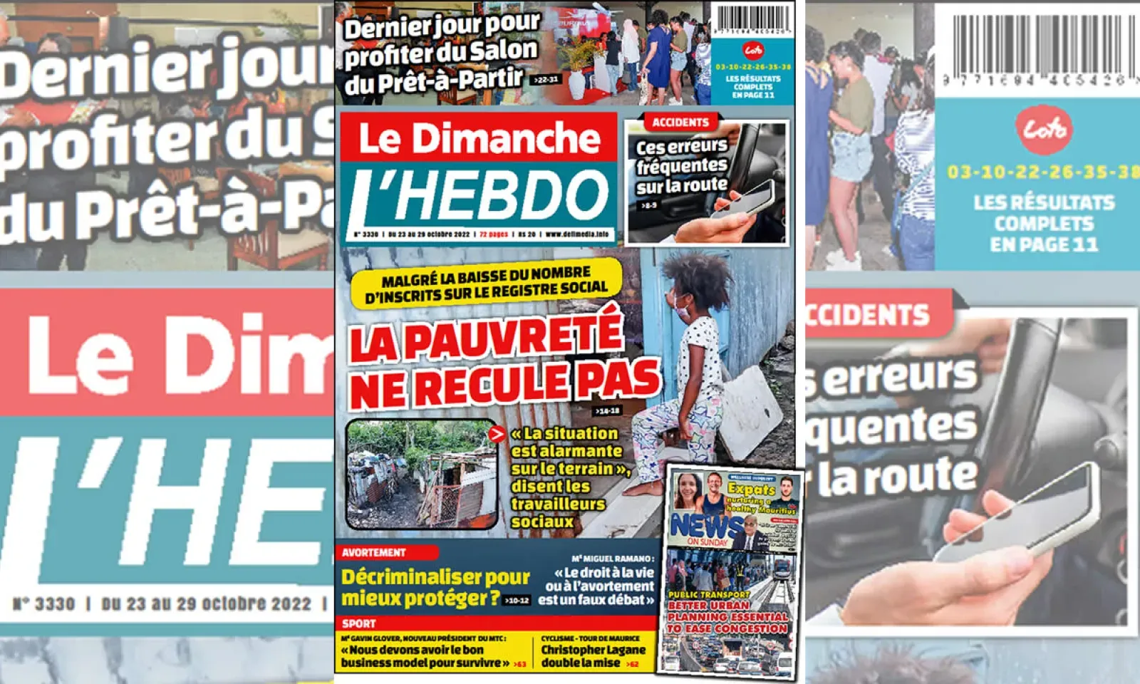 ? Voici la Une de Le Dimanche/L'Hebdo. Le journal est en vente à Rs 20 l'exemplaire aux endroits habituels (supermarchés, boutiques, tabagies, superettes). Bonne lecture !