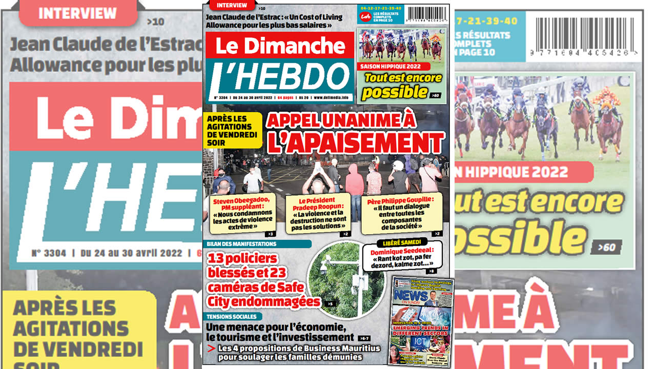 ? Voici la Une de Le Dimanche/L'Hebdo. Le journal est en vente à Rs 20 l'exemplaire aux endroits habituels (supermarchés, boutiques, tabagies, superettes). Bonne lecture !