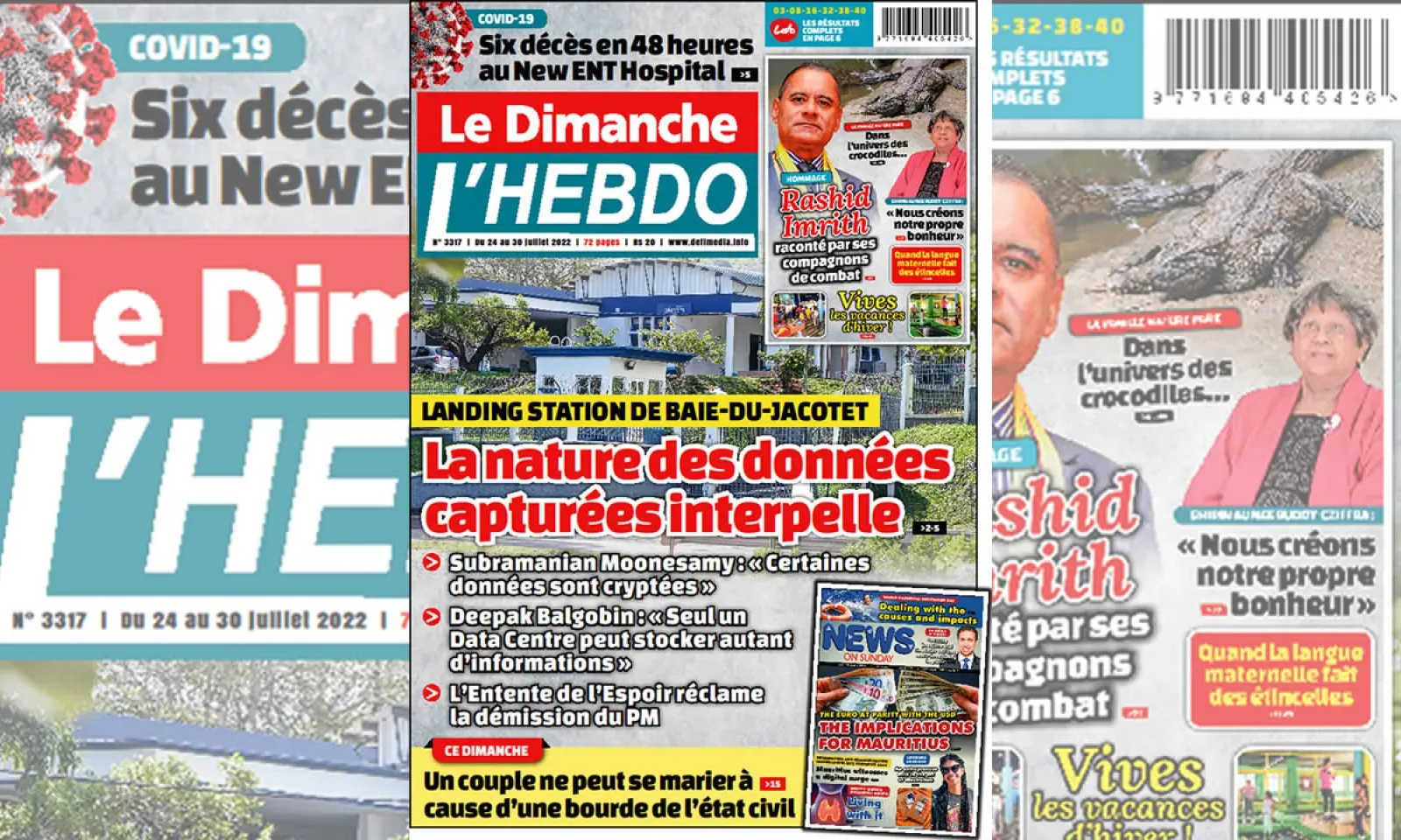 ? Voici la Une de Le Dimanche/L'Hebdo. Le journal est en vente à Rs 20 l'exemplaire aux endroits habituels (supermarchés, boutiques, tabagies, superettes). Bonne lecture !