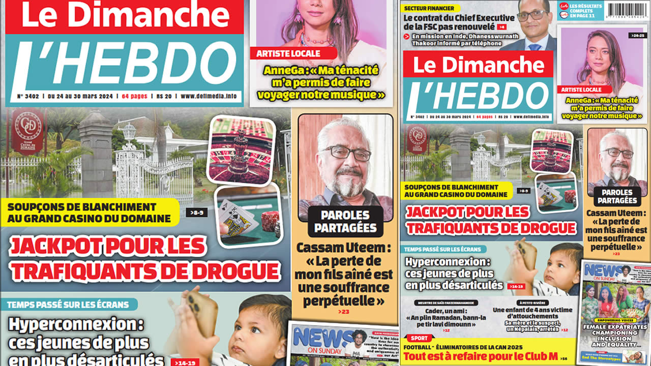 ? Voici la Une de Le Dimanche/L'Hebdo. Le journal est en vente à Rs 20 l'exemplaire aux endroits habituels (supermarchés, boutiques, tabagies, superettes). Bonne lecture !