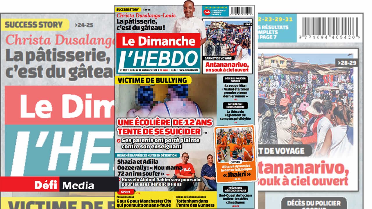 ? Voici la Une de Le Dimanche/L'Hebdo. Le journal est en vente à Rs 20 l'exemplaire aux endroits habituels (supermarchés, boutiques, tabagies, superettes). Bonne lecture !