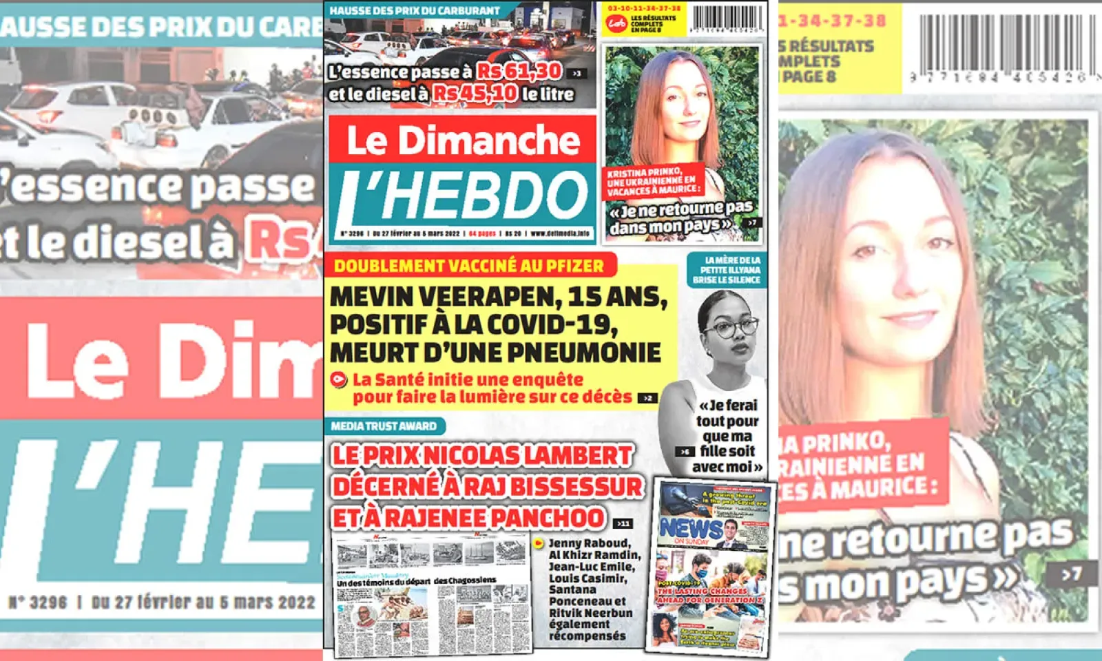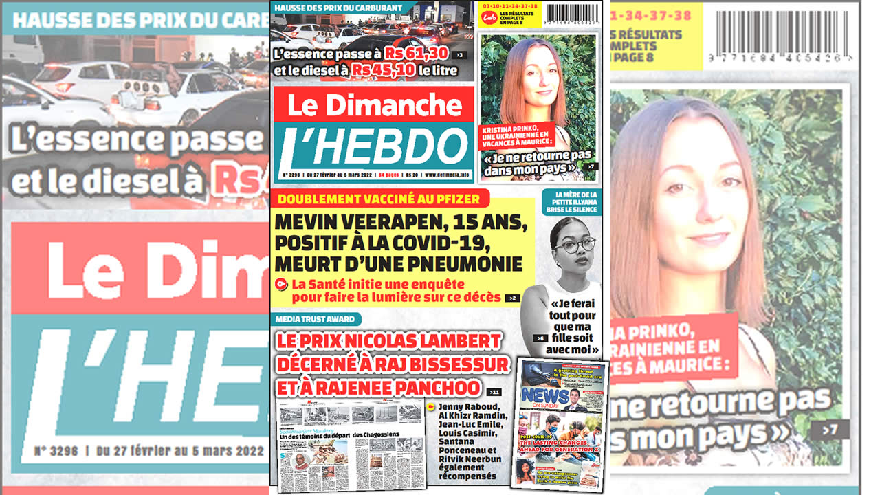 ? Voici la Une de Le Dimanche/L'Hebdo. Le journal est en vente à Rs 20 l'exemplaire aux endroits habituels (supermarchés, boutiques, tabagies, superettes). Bonne lecture !