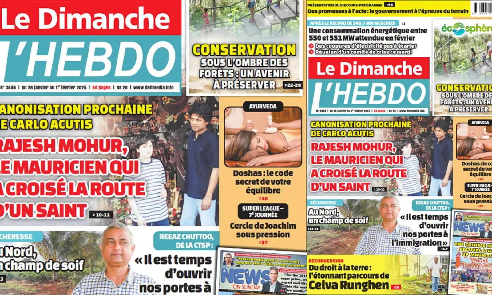 ? Voici la Une de Le Dimanche/L'Hebdo. Le journal est en vente à Rs 20 l'exemplaire aux endroits habituels (supermarchés, boutiques, tabagies, superettes). Bonne lecture !