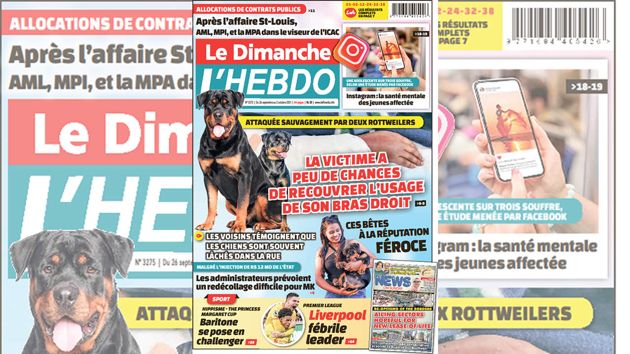 ? Voici la Une de Le Dimanche/L'Hebdo. Le journal est en vente à Rs 20 l'exemplaire aux endroits habituels (supermarchés, boutiques, tabagies, superettes). Bonne lecture !