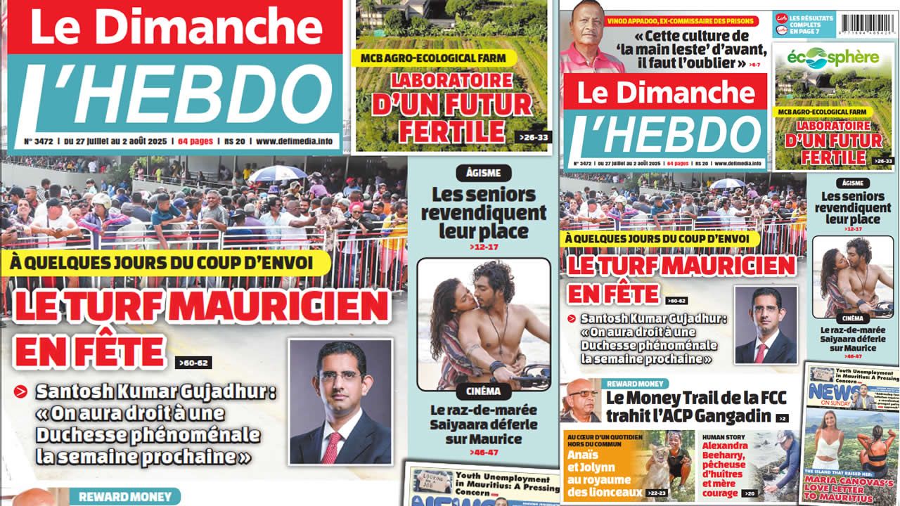 ? Voici la Une de Le Dimanche/L'Hebdo. Le journal est en vente à Rs 20 l'exemplaire aux endroits habituels (supermarchés, boutiques, tabagies, superettes). Bonne lecture !
