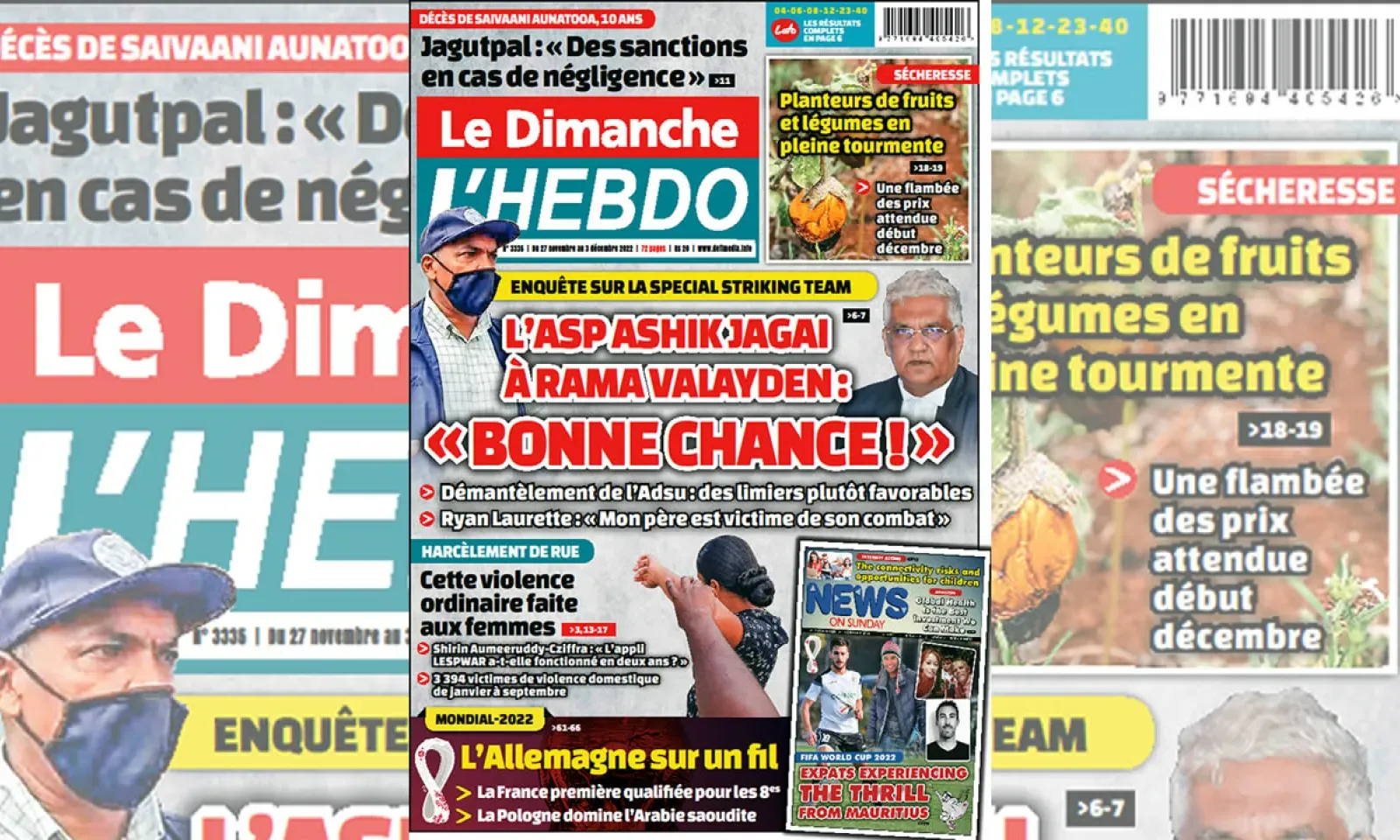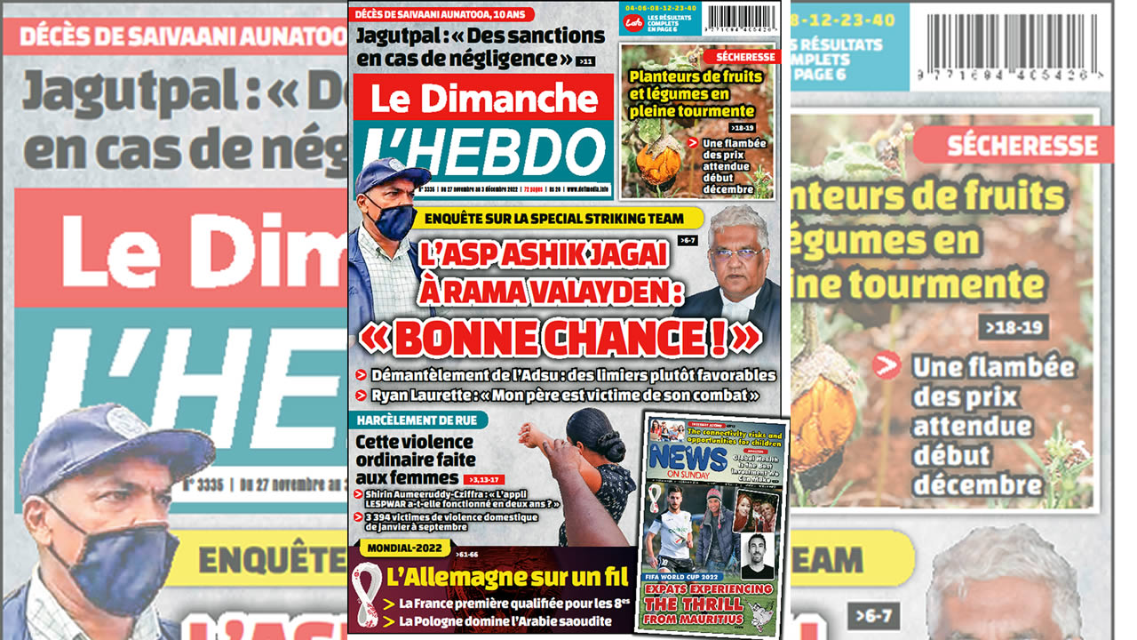 ? Voici la Une de Le Dimanche/L'Hebdo. Le journal est en vente à Rs 20 l'exemplaire aux endroits habituels (supermarchés, boutiques, tabagies, superettes). Bonne lecture !