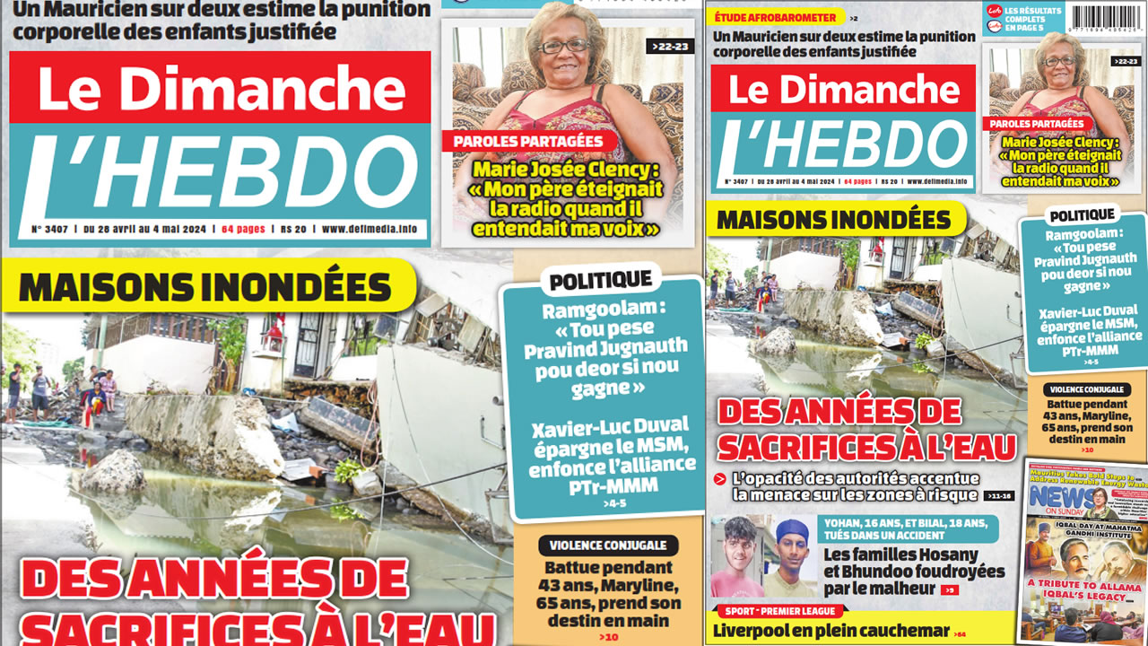 Image ? Voici la Une de Le Dimanche/L'Hebdo. Le journal est en vente à Rs 20 l'exemplaire aux endroits habituels (supermarchés, boutiques, tabagies, superettes). Bonne lecture ! Publicité View the discussion thread.