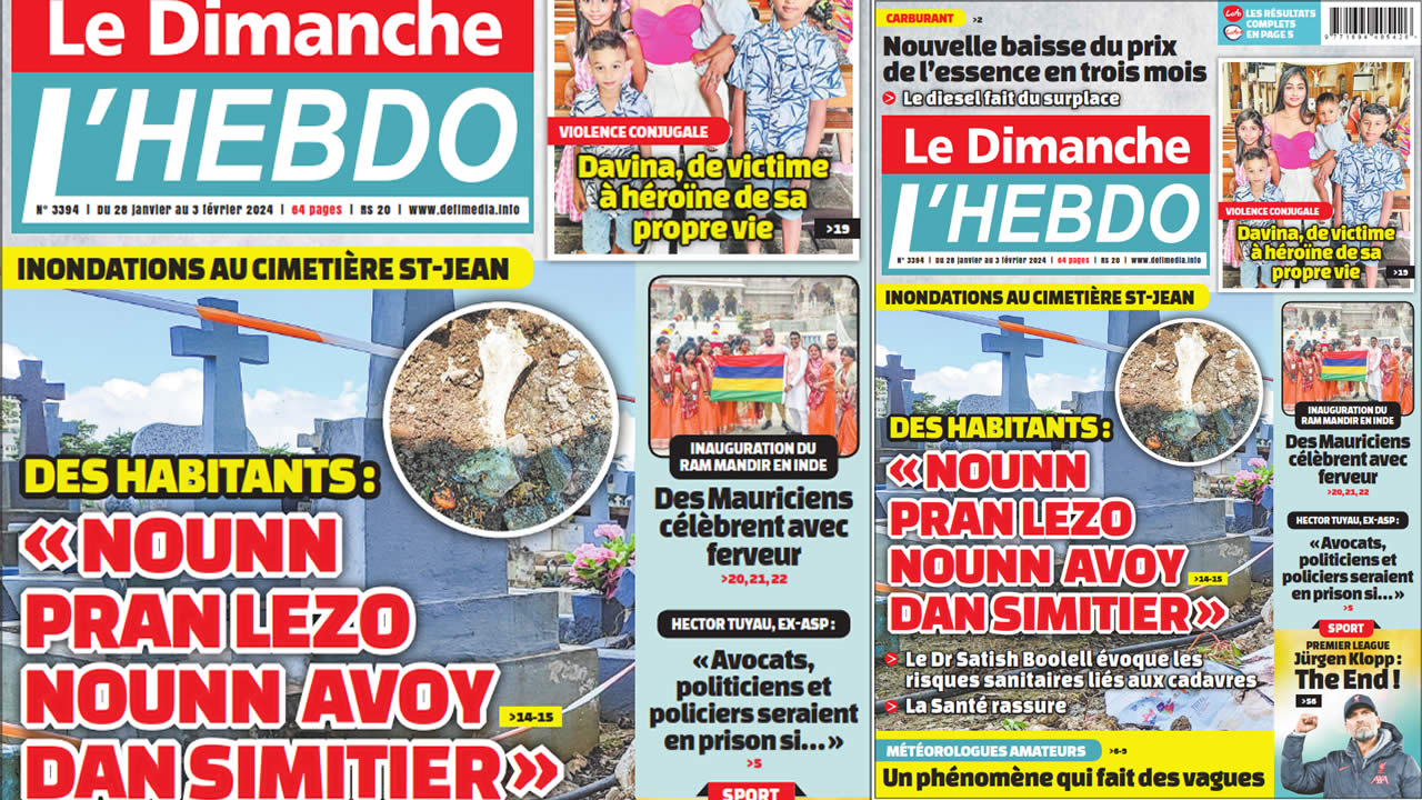 Image ? Voici la Une de Le Dimanche/L'Hebdo. Le journal est en vente à Rs 20 l'exemplaire aux endroits habituels (supermarchés, boutiques, tabagies, superettes). Bonne lecture ! Publicité View the discussion thread.