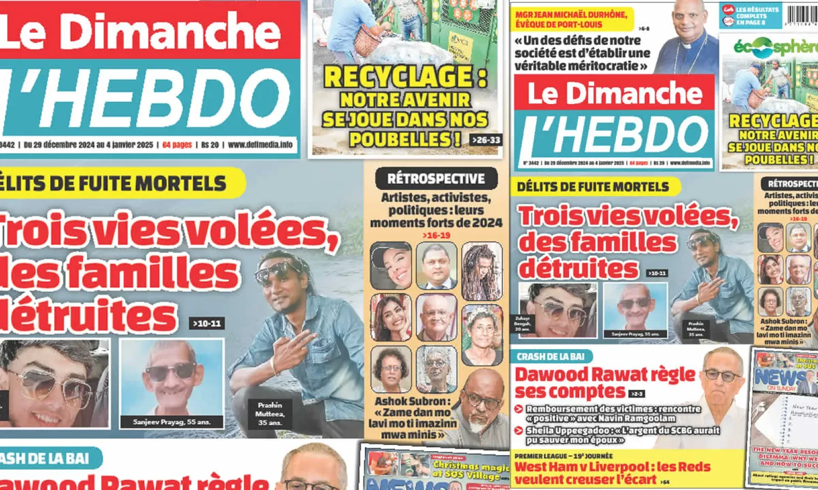 ? Voici la Une de Le Dimanche/L'Hebdo. Le journal est en vente à Rs 20 l'exemplaire aux endroits habituels (supermarchés, boutiques, tabagies, superettes). Bonne lecture !