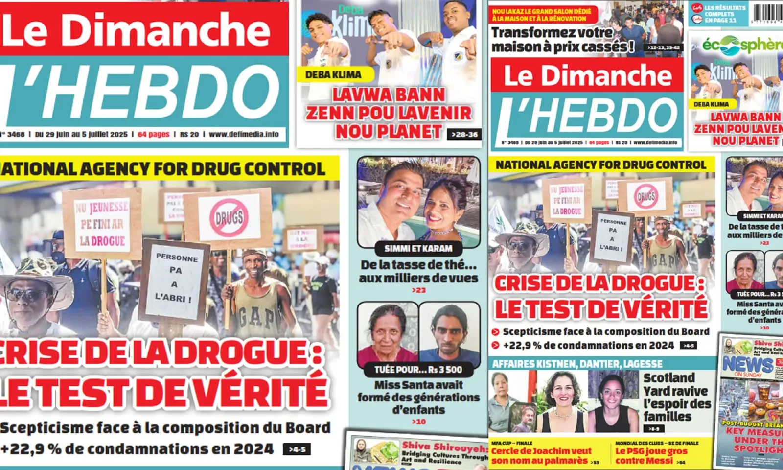 ? Voici la Une de Le Dimanche/L'Hebdo. Le journal est en vente à Rs 20 l'exemplaire aux endroits habituels (supermarchés, boutiques, tabagies, superettes). Bonne lecture !