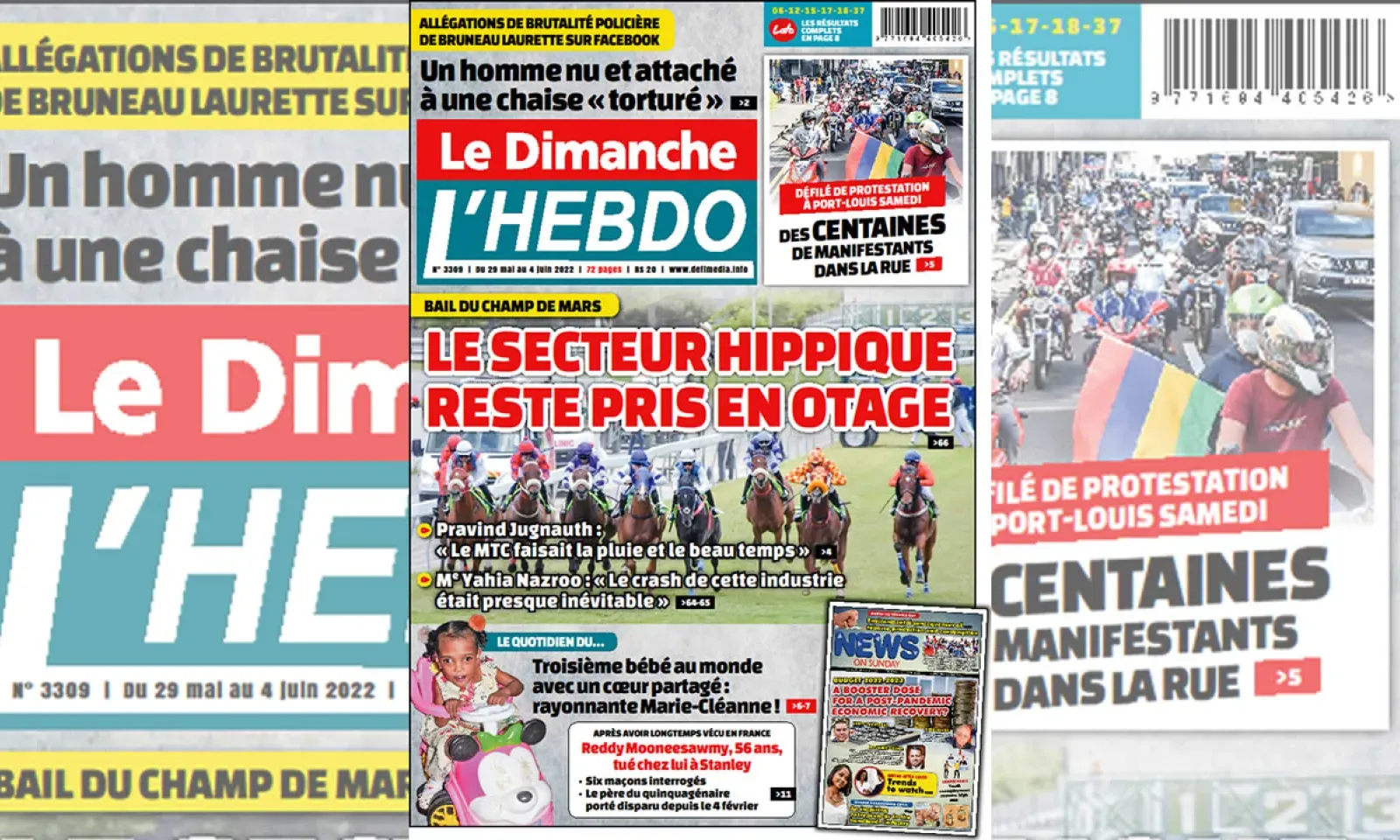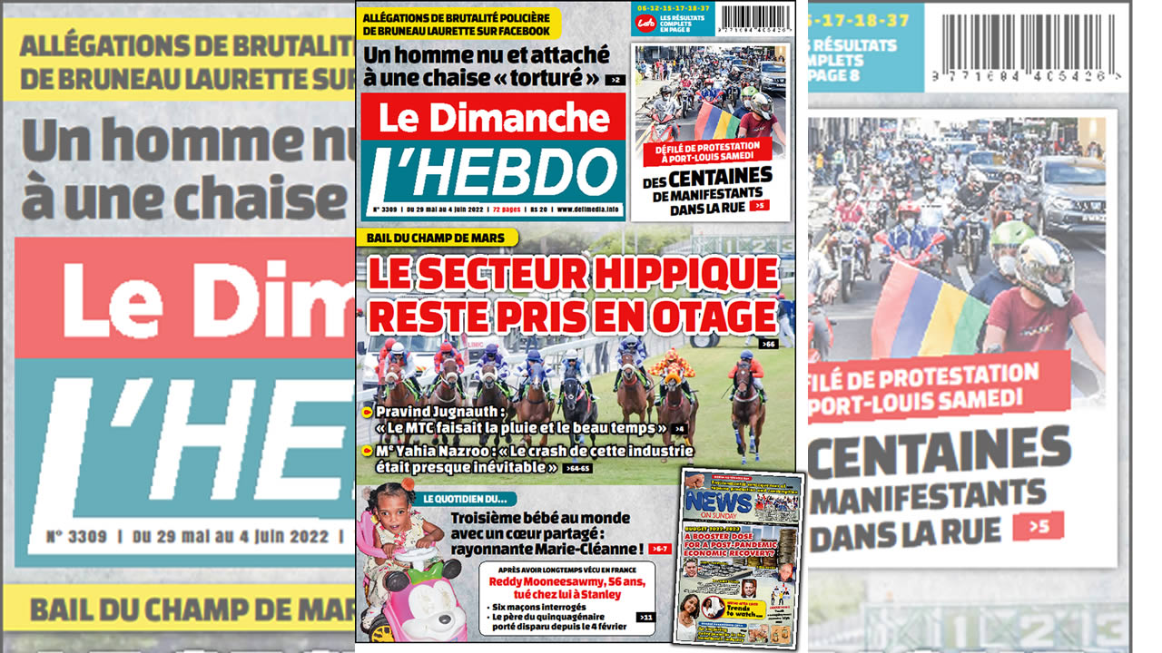 ? Voici la Une de Le Dimanche/L'Hebdo. Le journal est en vente à Rs 20 l'exemplaire aux endroits habituels (supermarchés, boutiques, tabagies, superettes). Bonne lecture !