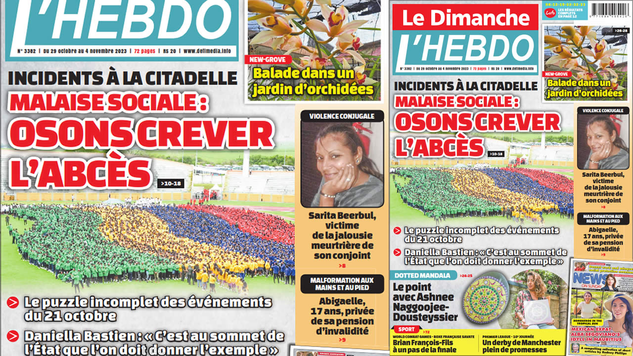? Voici la Une de Le Dimanche/L'Hebdo. Le journal est en vente à Rs 20 l'exemplaire aux endroits habituels (supermarchés, boutiques, tabagies, superettes). Bonne lecture !