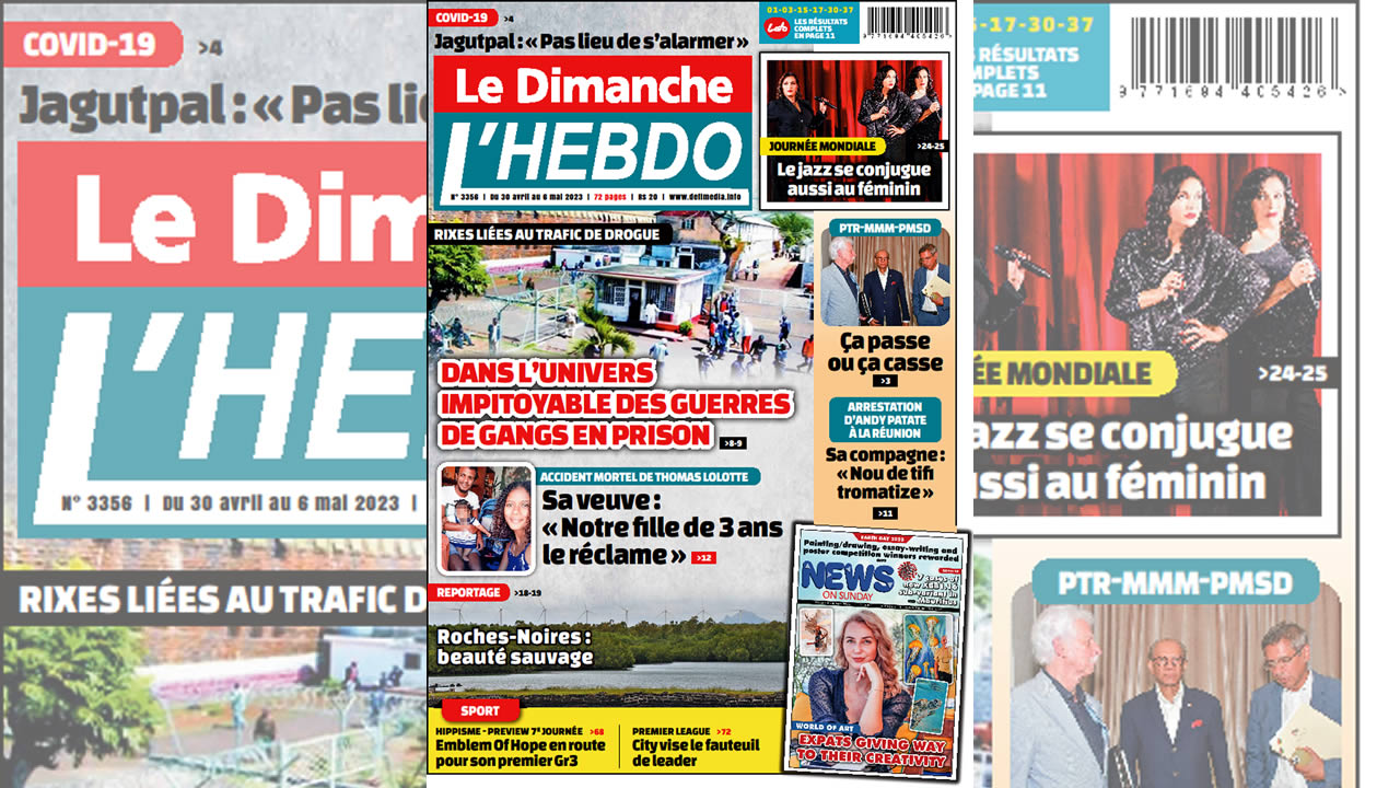 ? Voici la Une de Le Dimanche/L'Hebdo. Le journal est en vente à Rs 20 l'exemplaire aux endroits habituels (supermarchés, boutiques, tabagies, superettes). Bonne lecture !