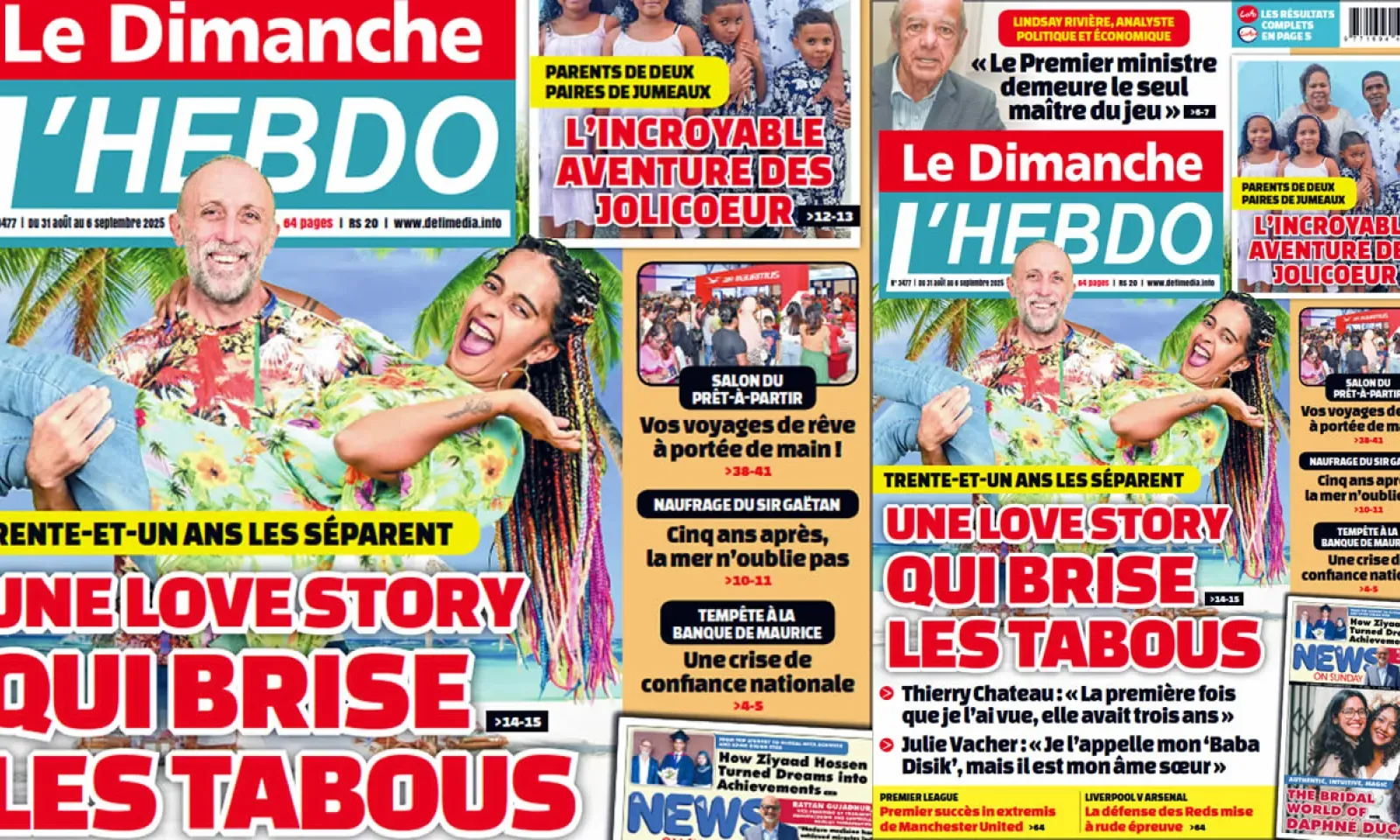 ? Voici la Une de Le Dimanche/L'Hebdo. Le journal est en vente à Rs 20 l'exemplaire aux endroits habituels (supermarchés, boutiques, tabagies, superettes). Bonne lecture !