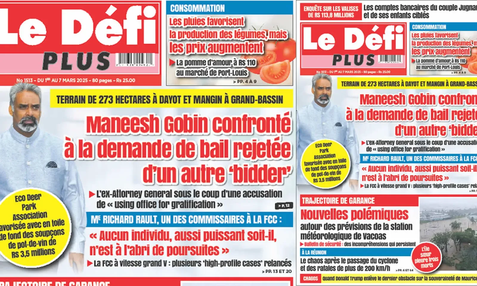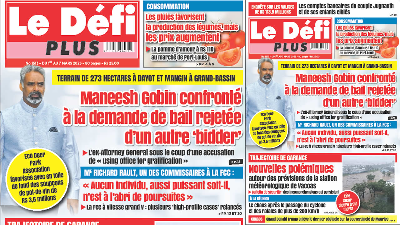 Voici la Une du Défi Plus. Le journal est en vente à Rs 25 l'exemplaire aux endroits habituels (supermarchés, boutiques, tabagies, superettes). Bonne lecture !