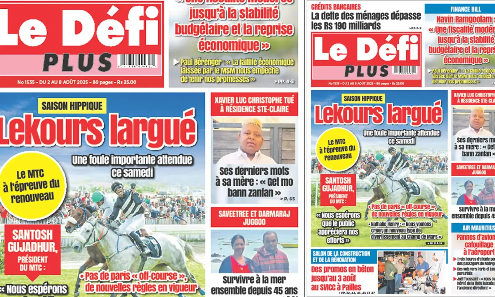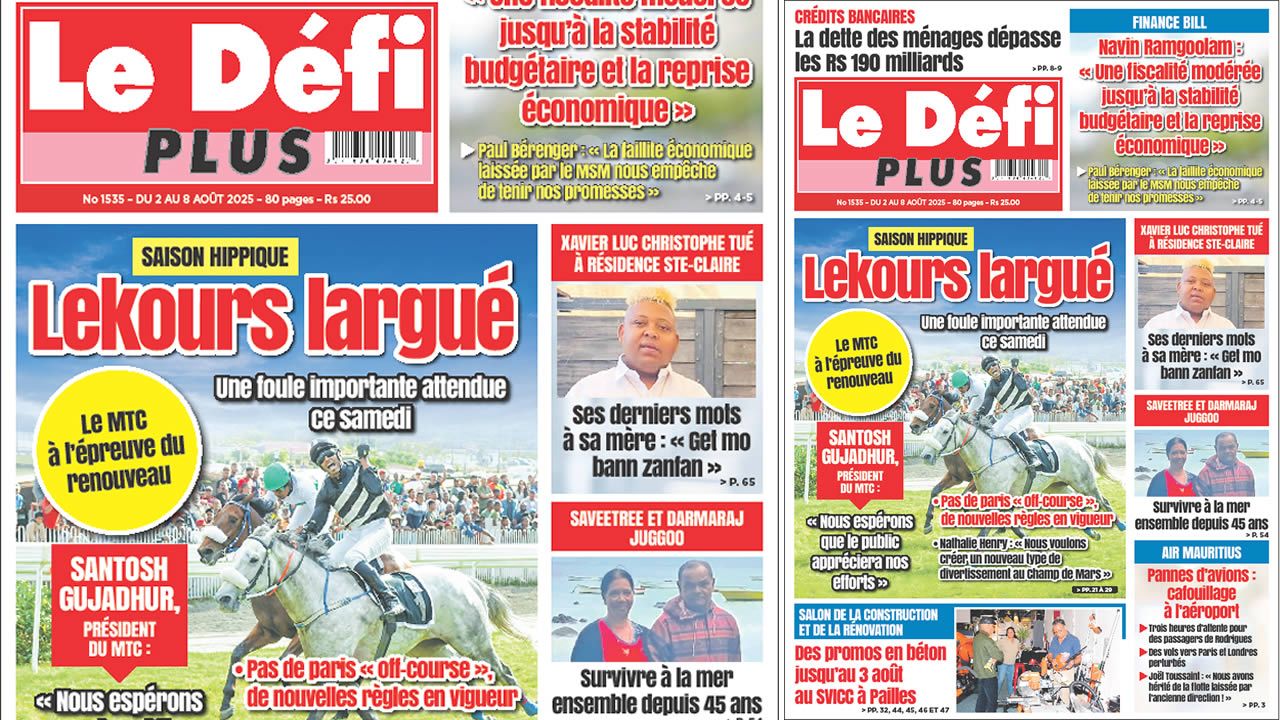 ? Voici la Une du Défi Plus. Le journal est en vente à Rs 25 l'exemplaire aux endroits habituels (supermarchés, boutiques, tabagies, superettes). Bonne lecture !