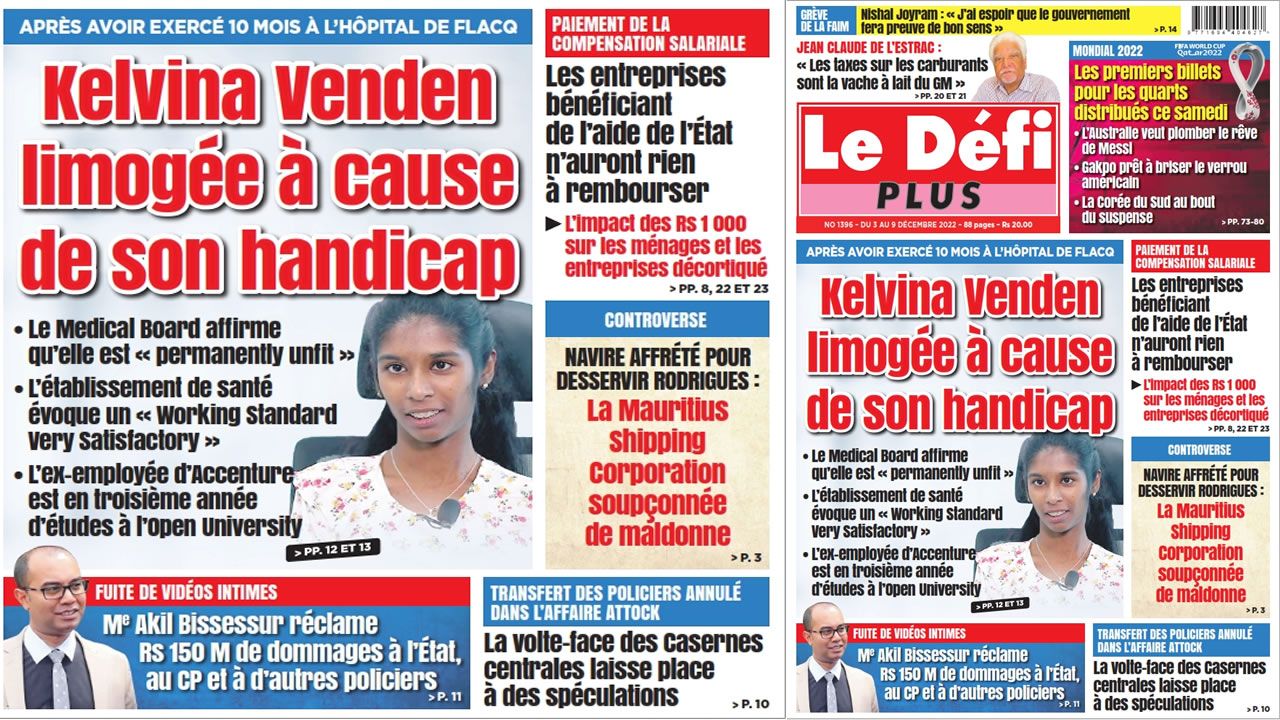 ? Voici la Une du Défi Plus. Le journal est en vente à Rs 20 l'exemplaire aux endroits habituels (supermarchés, boutiques, tabagies, superettes). Bonne lecture !