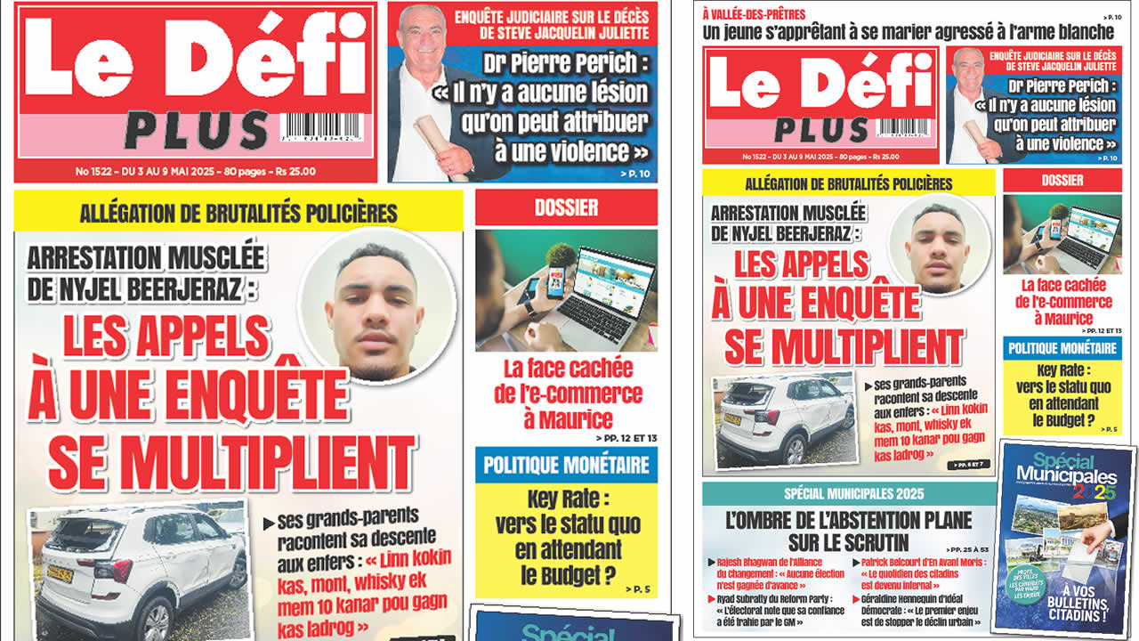 Voici la Une du Défi Plus. Le journal est en vente à Rs 25 l'exemplaire aux endroits habituels (supermarchés, boutiques, tabagies, superettes). Bonne lecture !