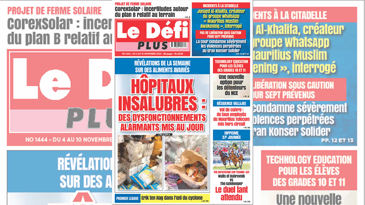 ? Voici la Une du Défi Plus. Le journal est en vente à Rs 25 l'exemplaire aux endroits habituels (supermarchés, boutiques, tabagies, superettes). Bonne lecture !
