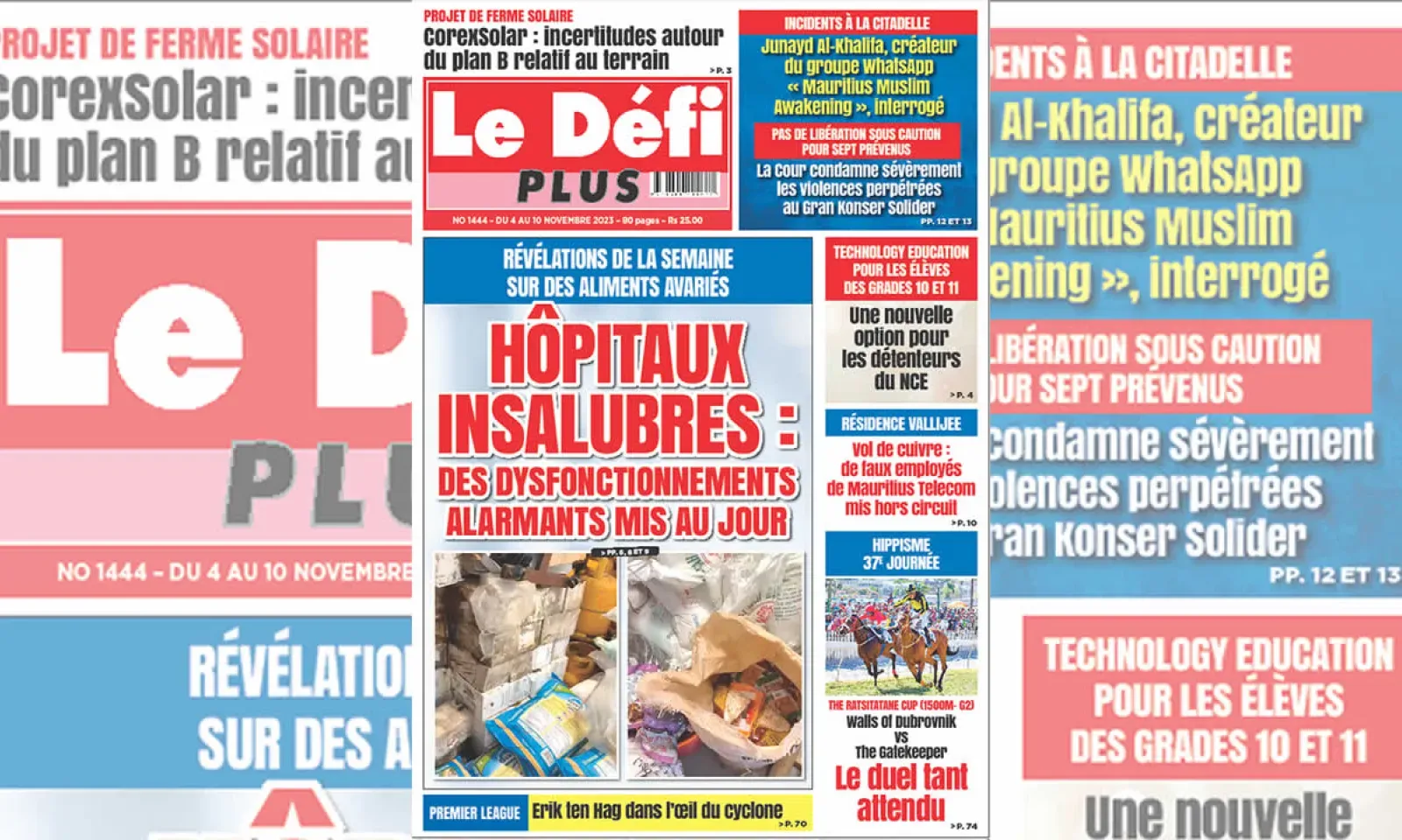 ? Voici la Une du Défi Plus. Le journal est en vente à Rs 25 l'exemplaire aux endroits habituels (supermarchés, boutiques, tabagies, superettes). Bonne lecture !