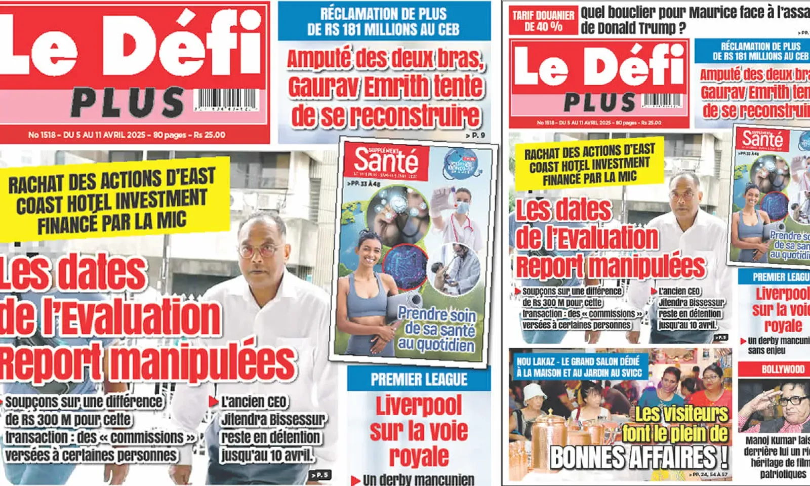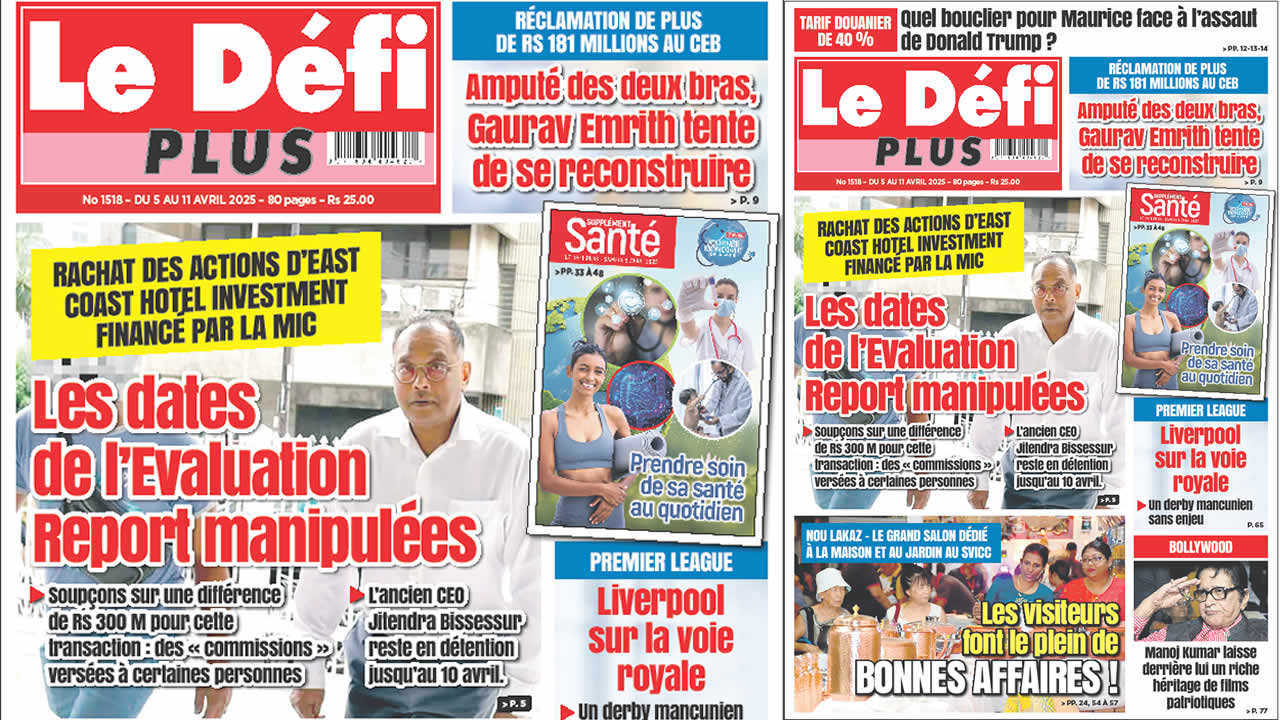 Voici la Une du Défi Plus. Le journal est en vente à Rs 25 l'exemplaire aux endroits habituels (supermarchés, boutiques, tabagies, superettes). Bonne lecture !