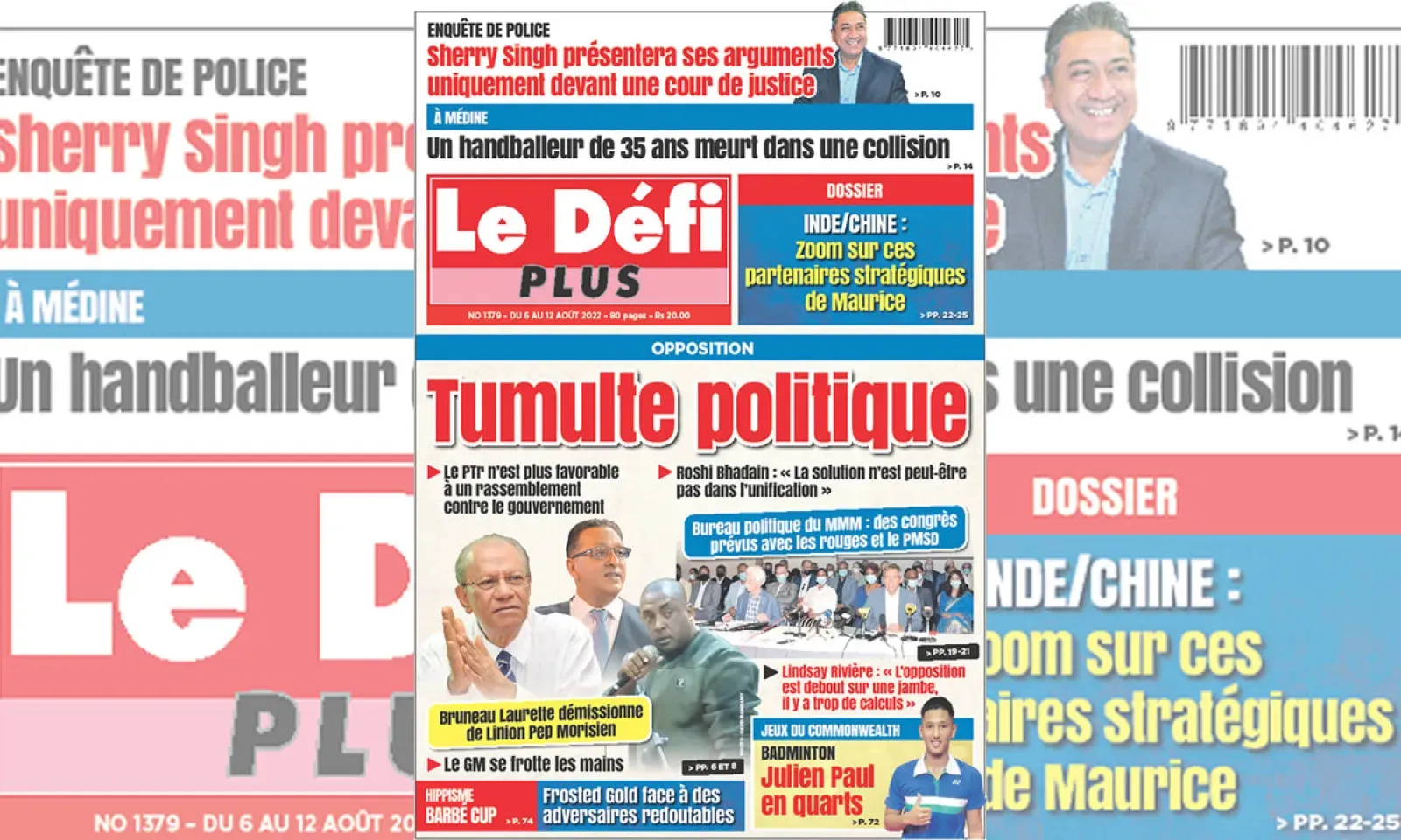 ? Voici la Une du Défi Plus. Le journal est en vente à Rs 20 l'exemplaire aux endroits habituels (supermarchés, boutiques, tabagies, superettes). Bonne lecture !