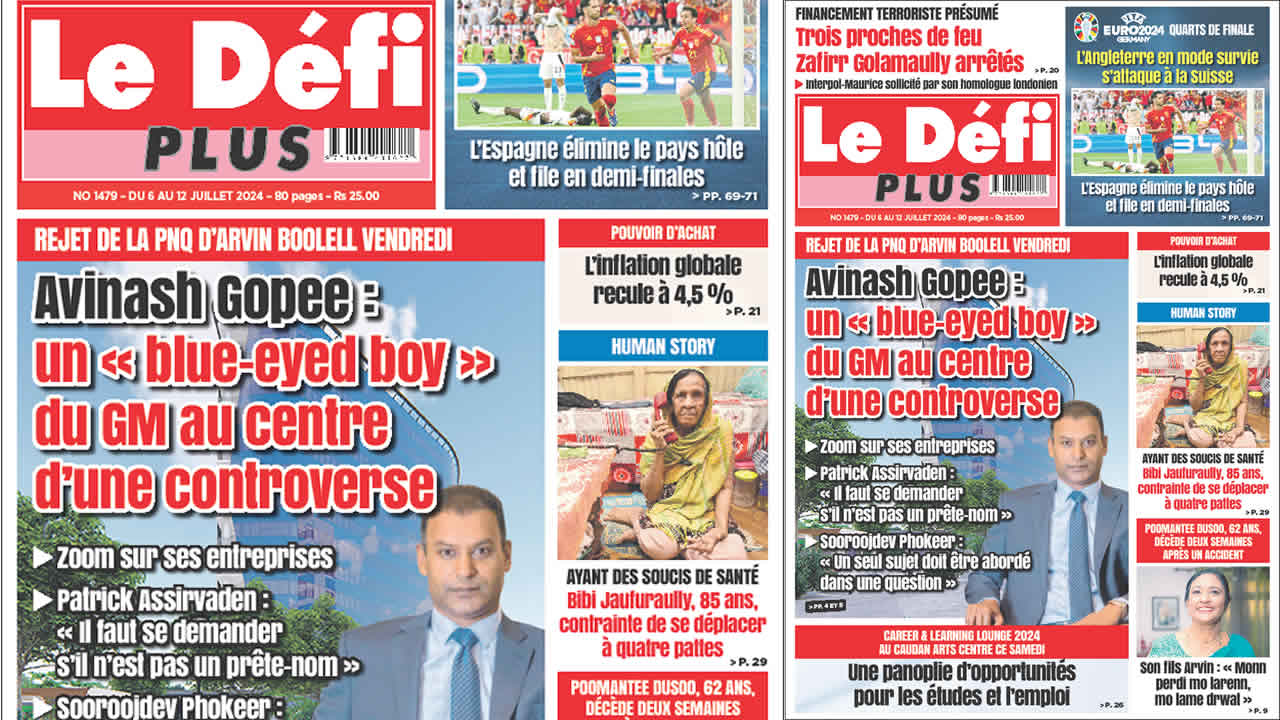 ? Voici la Une du Défi Plus. Le journal est en vente à Rs 25 l'exemplaire aux endroits habituels (supermarchés, boutiques, tabagies, superettes). Bonne lecture !