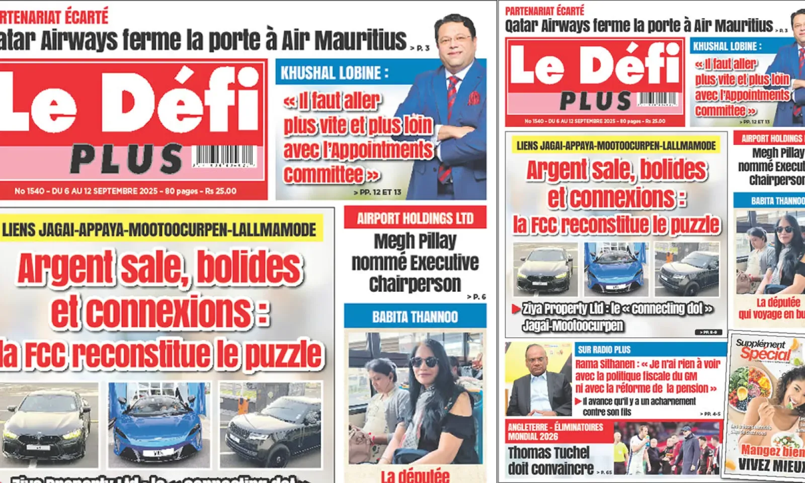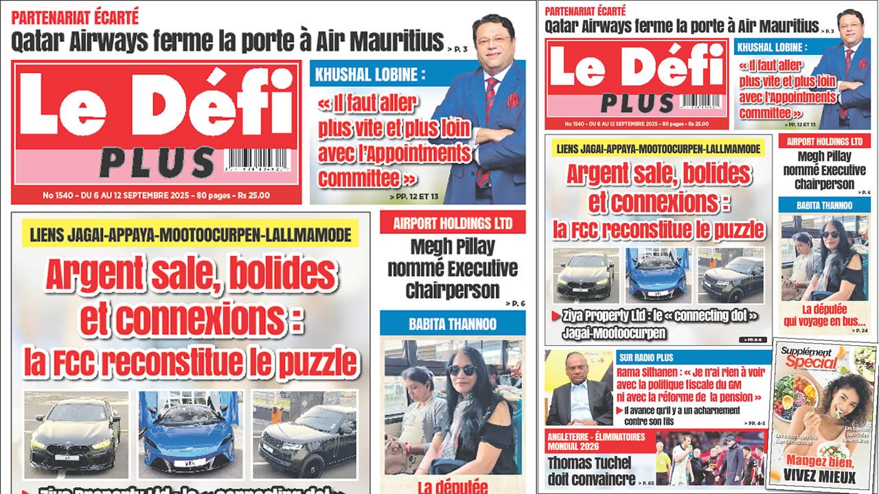 ? Voici la Une du Défi Plus. Le journal est en vente à Rs 25 l'exemplaire aux endroits habituels (supermarchés, boutiques, tabagies, superettes). Bonne lecture !