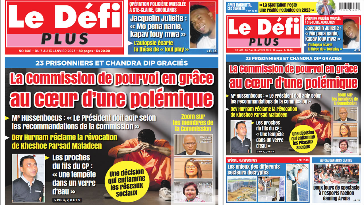 ? Voici la Une du Défi Plus. Le journal est en vente à Rs 20 l'exemplaire aux endroits habituels (supermarchés, boutiques, tabagies, superettes). Bonne lecture !