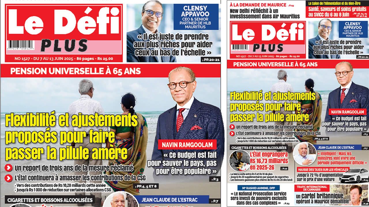 ? Voici la Une du Défi Plus. Le journal est en vente à Rs 25 l'exemplaire aux endroits habituels (supermarchés, boutiques, tabagies, superettes). Bonne lecture !