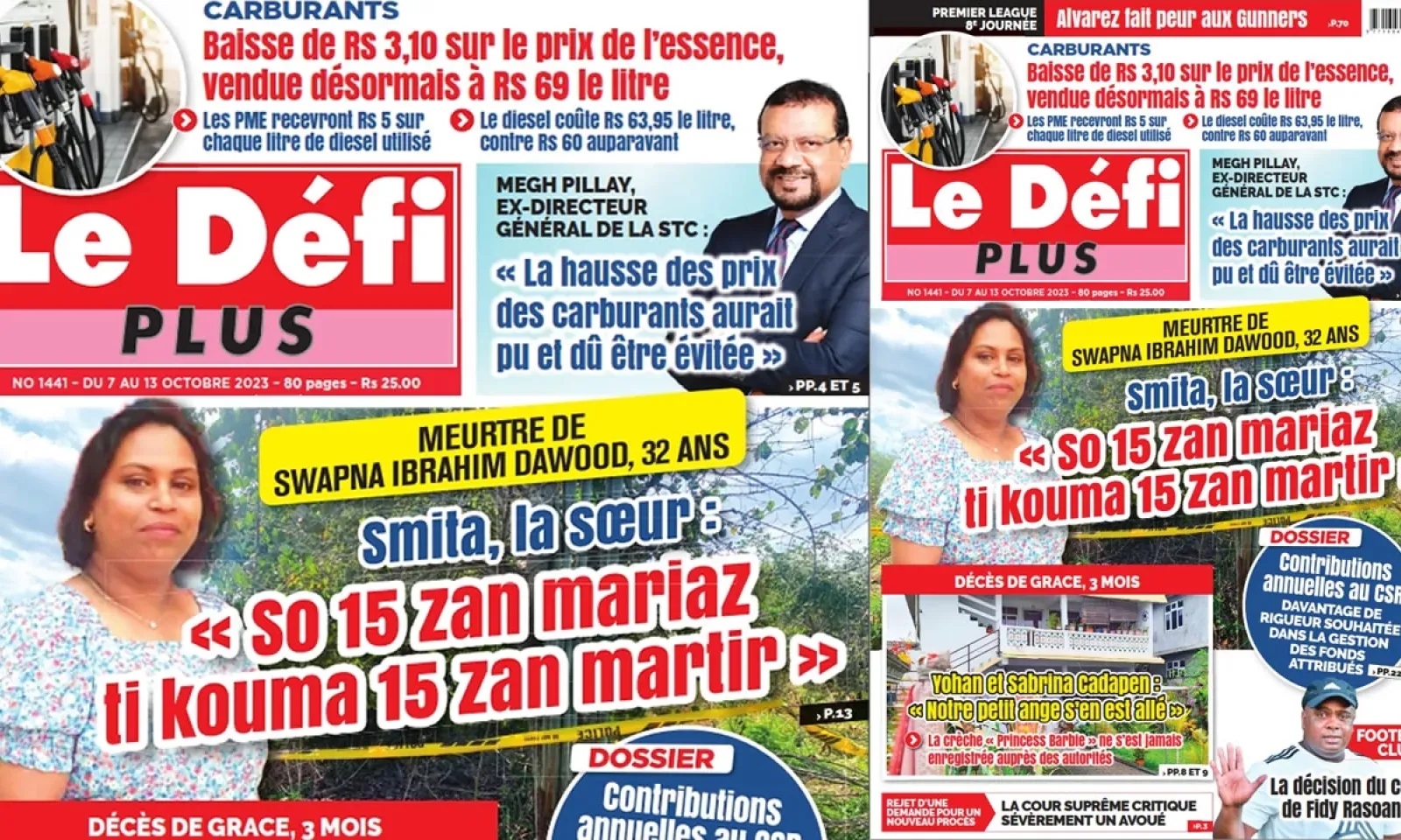 ? Voici la Une du Défi Plus. Le journal est en vente à Rs 25 l'exemplaire aux endroits habituels (supermarchés, boutiques, tabagies, superettes). Bonne lecture !