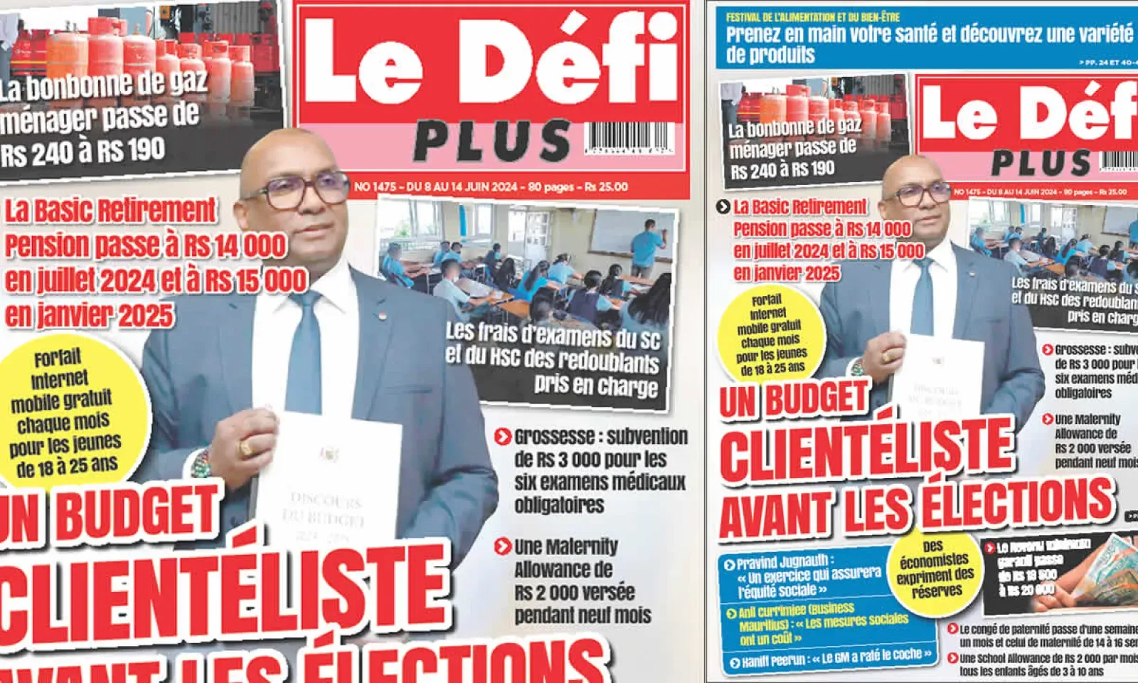? Voici la Une du Défi Plus. Le journal est en vente à Rs 25 l'exemplaire aux endroits habituels (supermarchés, boutiques, tabagies, superettes). Bonne lecture !