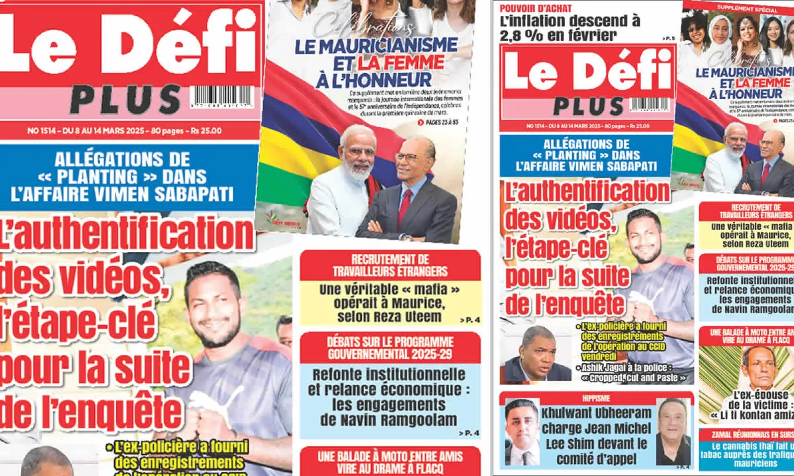 Voici la Une du Défi Plus. Le journal est en vente à Rs 25 l'exemplaire aux endroits habituels (supermarchés, boutiques, tabagies, superettes). Bonne lecture !