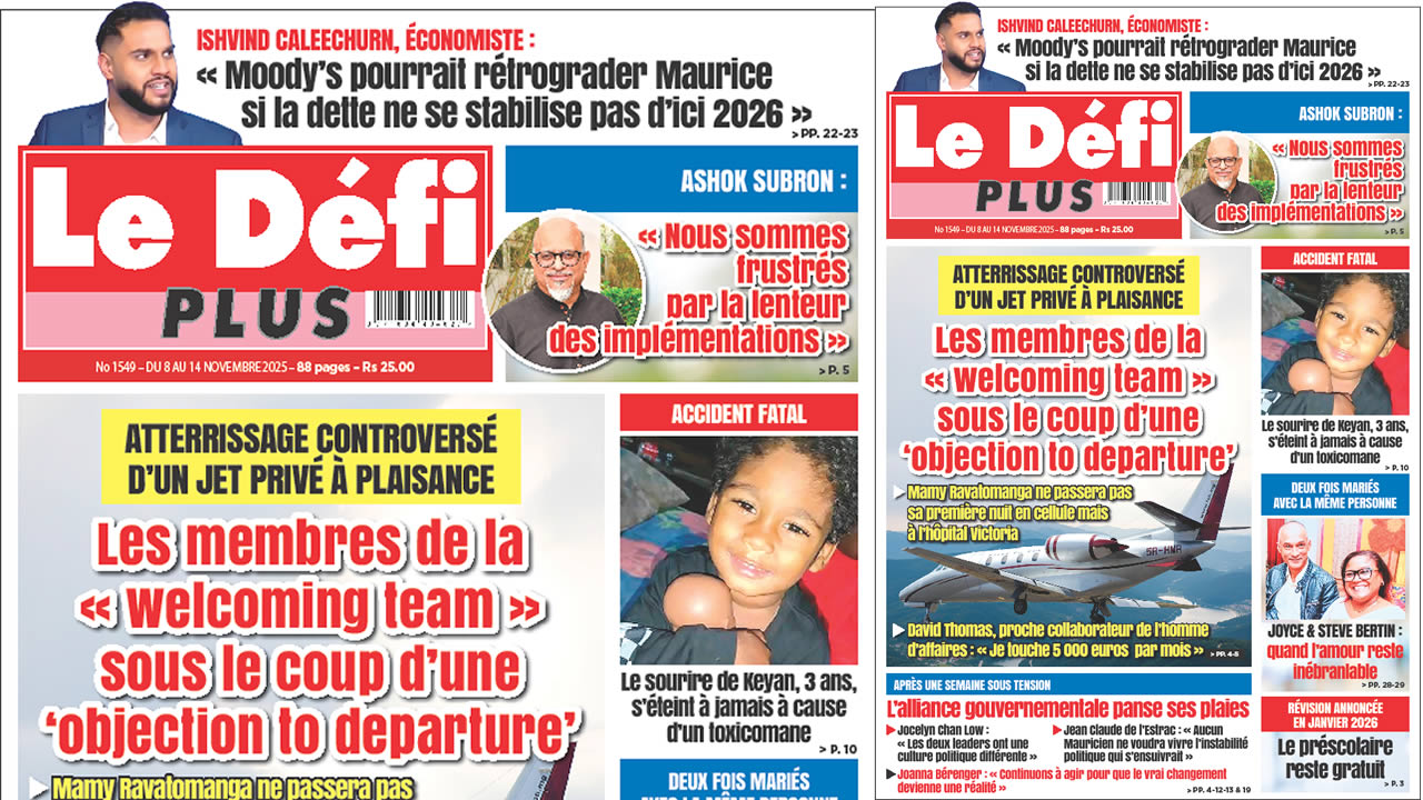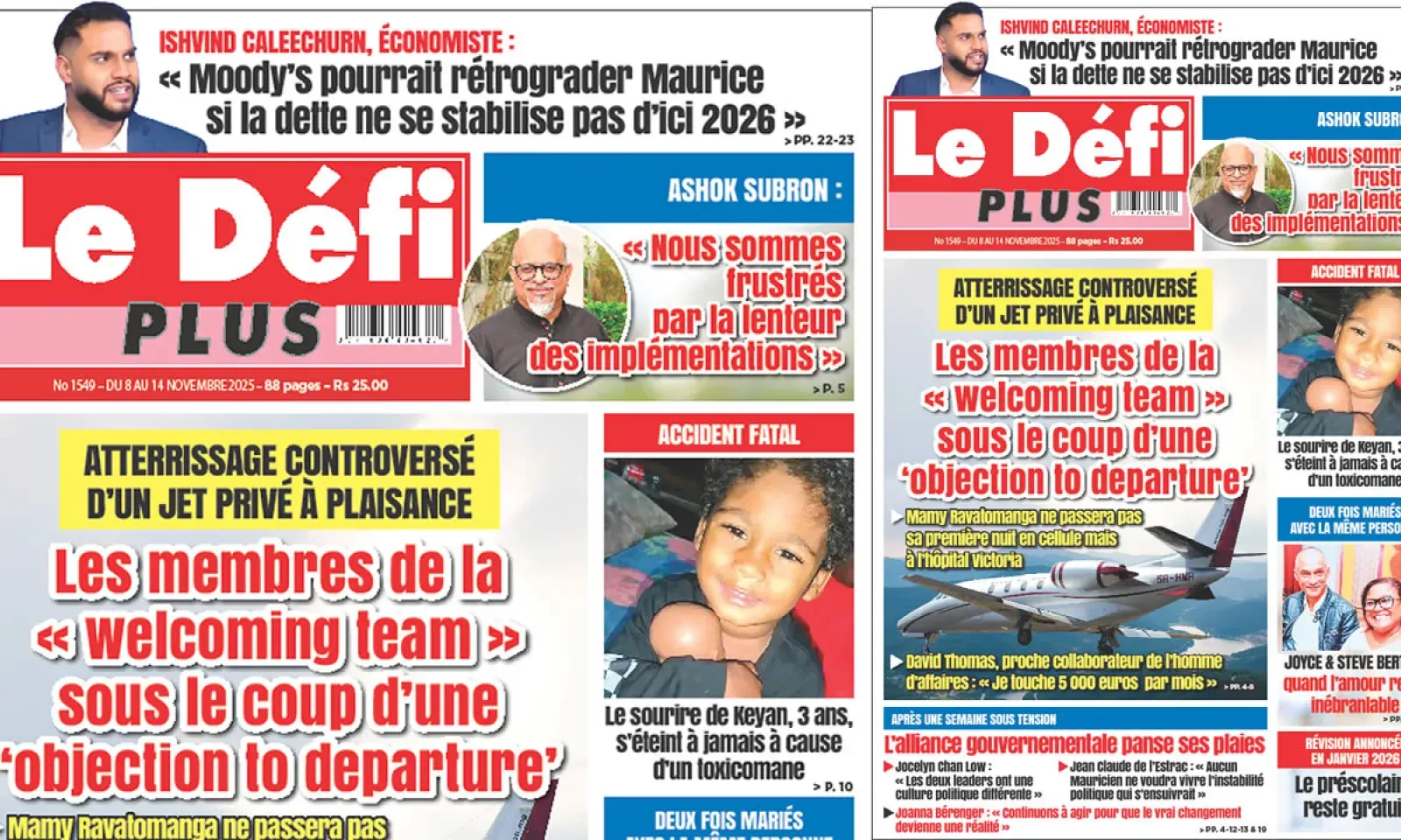 ? Voici la Une du Défi Plus. Le journal est en vente à Rs 25 l'exemplaire aux endroits habituels (supermarchés, boutiques, tabagies, superettes). Bonne lecture !