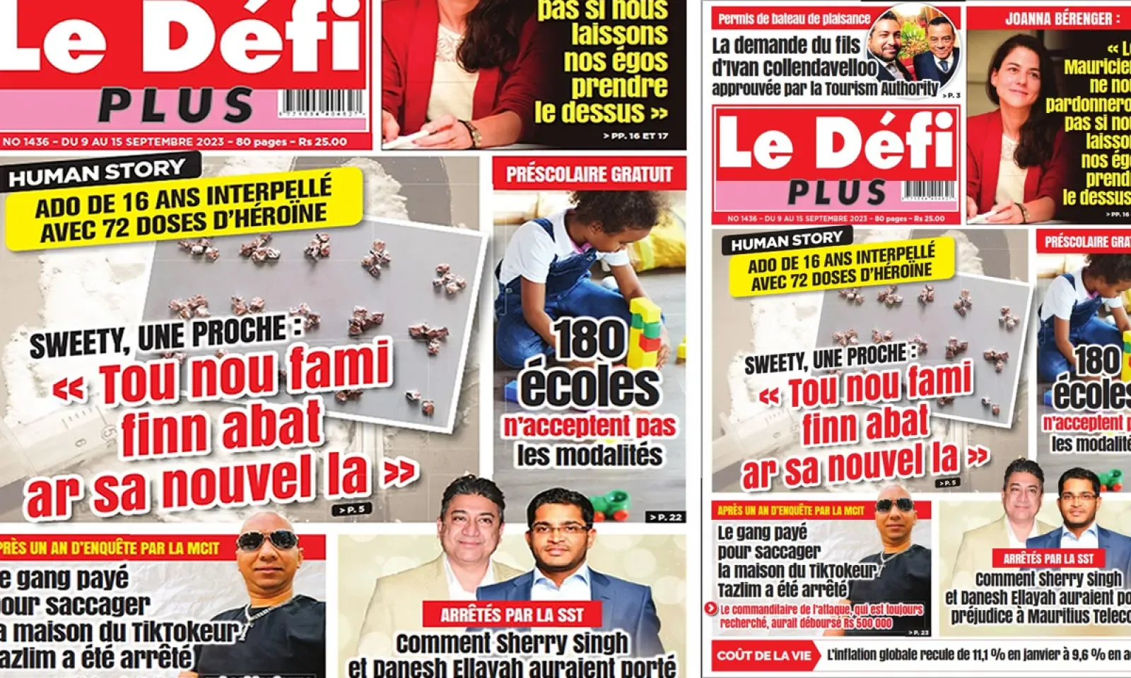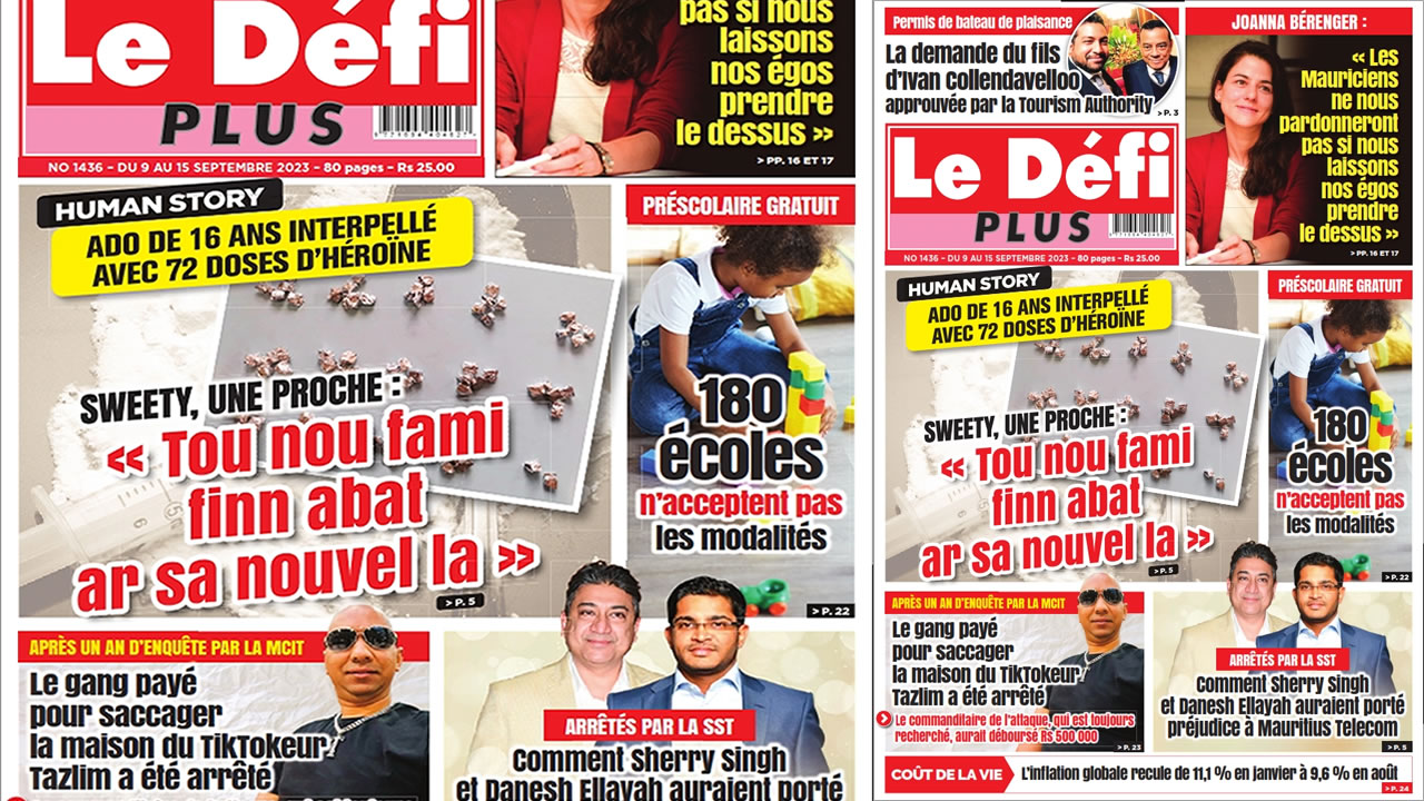 ? Voici la Une du Défi Plus. Le journal est en vente à Rs 25 l'exemplaire aux endroits habituels (supermarchés, boutiques, tabagies, superettes). Bonne lecture !