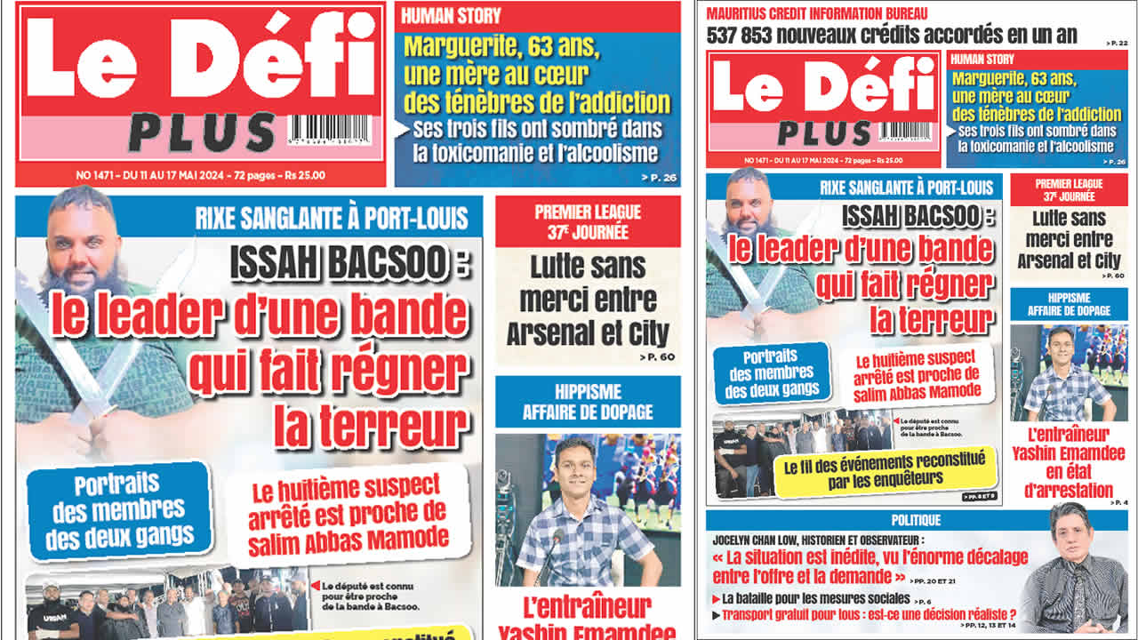 ? Voici la Une du Défi Plus. Le journal est en vente à Rs 25 l'exemplaire aux endroits habituels (supermarchés, boutiques, tabagies, superettes). Bonne lecture !
