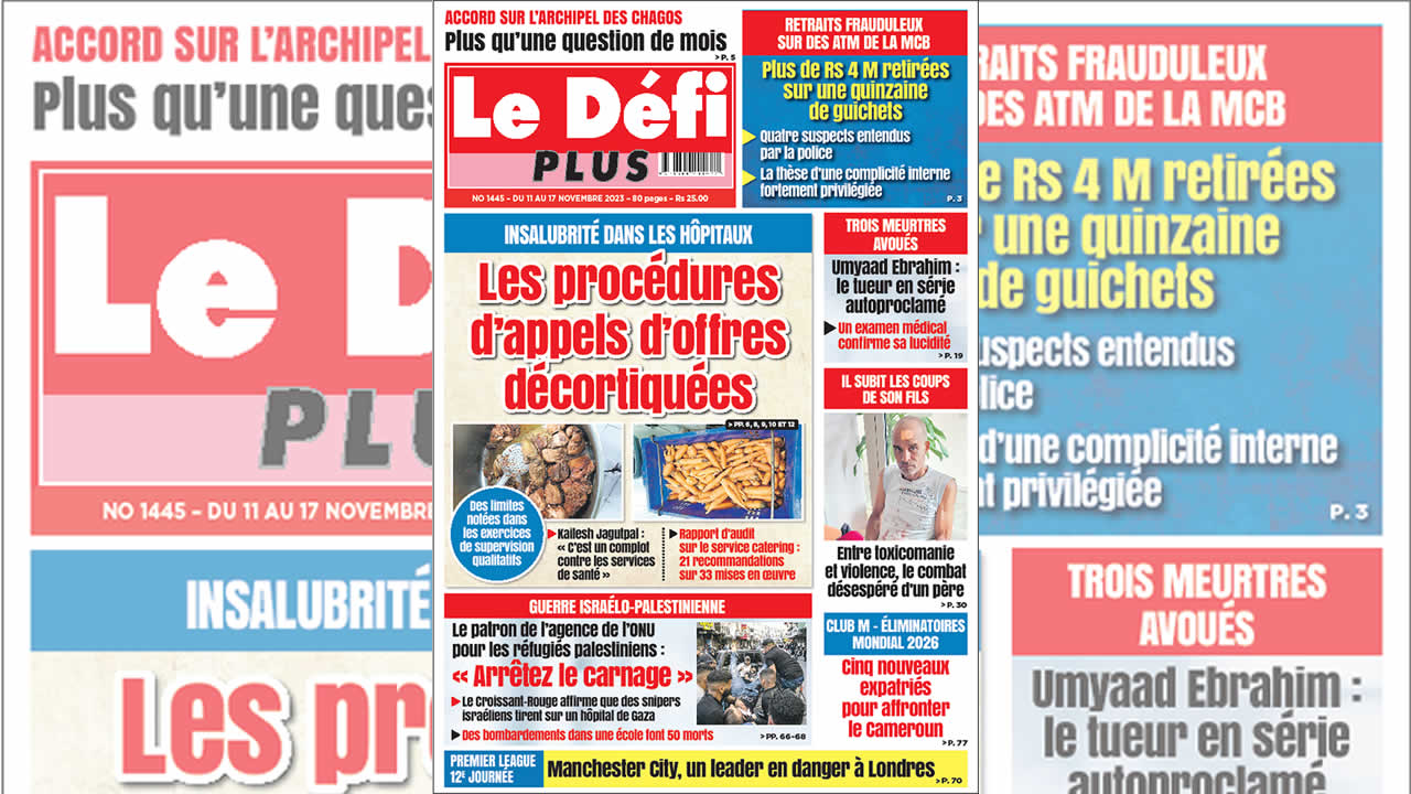 ? Voici la Une du Défi Plus. Le journal est en vente à Rs 25 l'exemplaire aux endroits habituels (supermarchés, boutiques, tabagies, superettes). Bonne lecture !