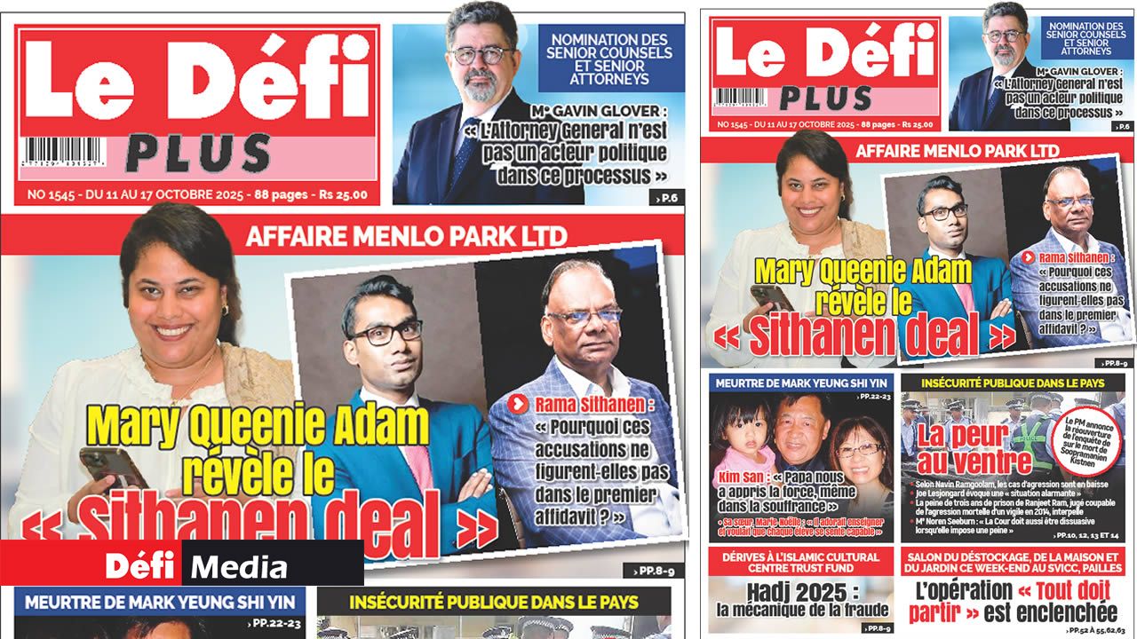 ? Voici la Une du Défi Plus. Le journal est en vente à Rs 25 l'exemplaire aux endroits habituels (supermarchés, boutiques, tabagies, superettes). Bonne lecture !