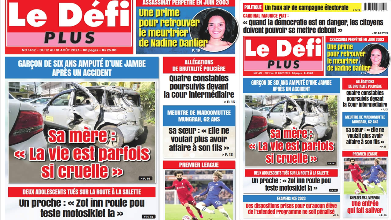 ? Voici la Une du Défi Plus. Le journal est en vente à Rs 25 l'exemplaire aux endroits habituels (supermarchés, boutiques, tabagies, superettes). Bonne lecture !