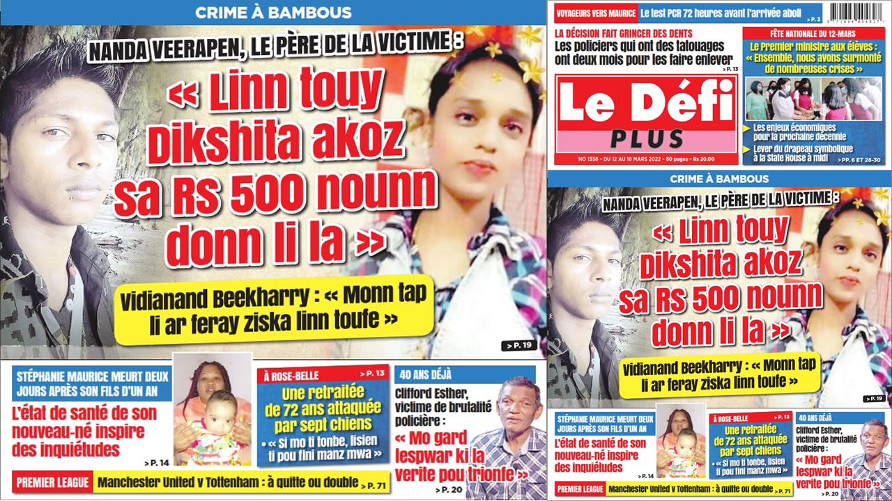 ? Voici la Une du Défi Plus. Le journal est en vente à Rs 20 l'exemplaire aux endroits habituels (supermarchés, boutiques, tabagies, superettes). Bonne lecture !