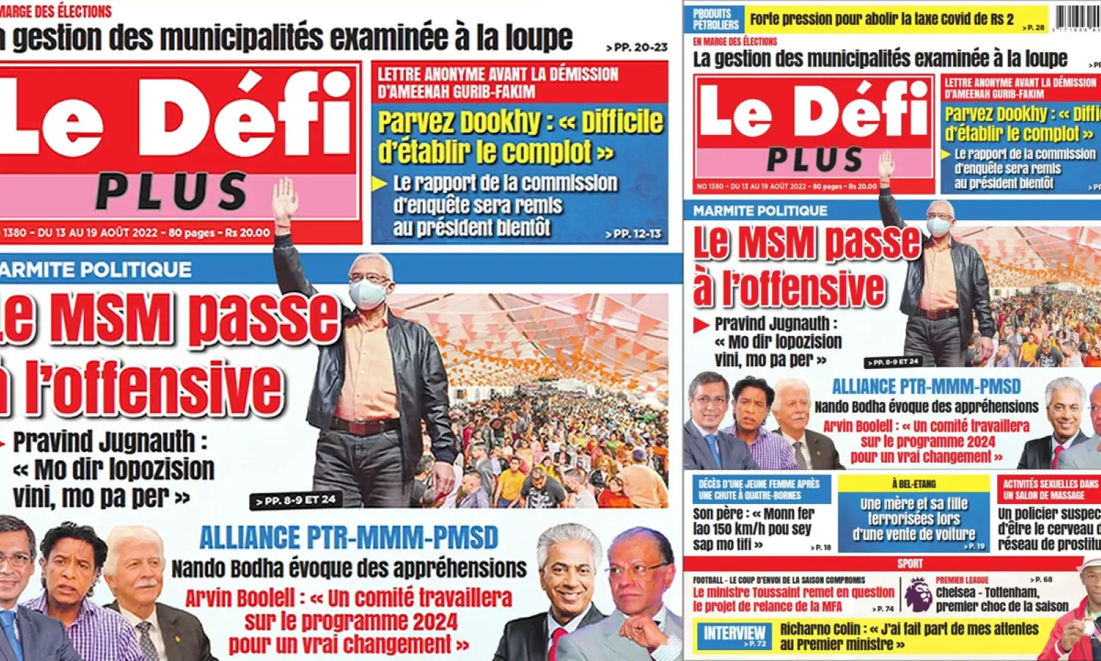 ? Voici la Une du Défi Plus. Le journal est en vente à Rs 20 l'exemplaire aux endroits habituels (supermarchés, boutiques, tabagies, superettes). Bonne lecture !