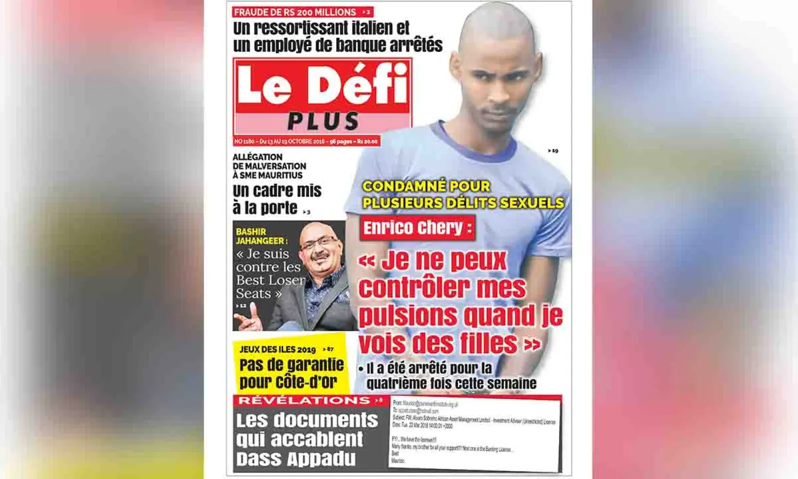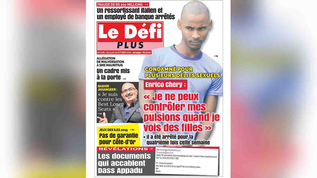 Bedin G., 40 ans, un ressortissant italien et directeur de compagnie, et un dénommé Yasamy, 50 ans, cadre dans une banque commerciale, ont été arrêtés par la police de Sodnac. Ils sont soupçonnés d’être impliqués dans une fraude à hauteur de Rs 200 millions. L’employé de banque, qui a été arrêté la semaine dernière, a déjà retrouvé la liberté conditionnelle, alors que son présumé complice reste en détention policière.