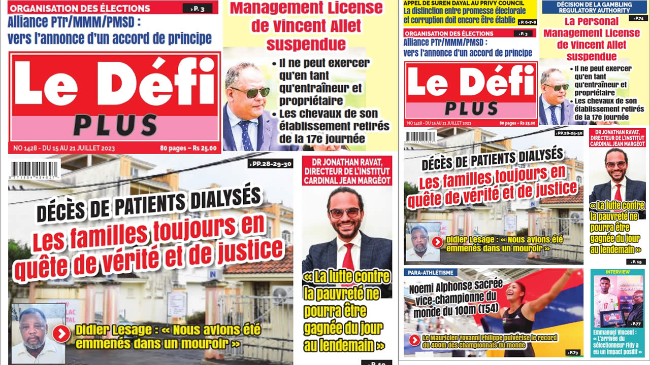? Voici la Une du Défi Plus. Le journal est en vente à Rs 25 l'exemplaire aux endroits habituels (supermarchés, boutiques, tabagies, superettes). Bonne lecture !