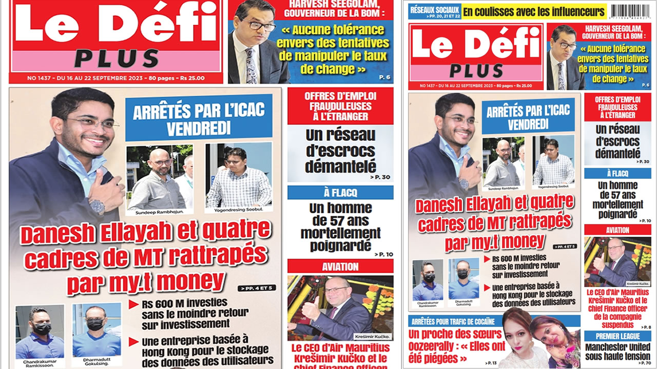 ? Voici la Une du Défi Plus. Le journal est en vente à Rs 25 l'exemplaire aux endroits habituels (supermarchés, boutiques, tabagies, superettes). Bonne lecture !