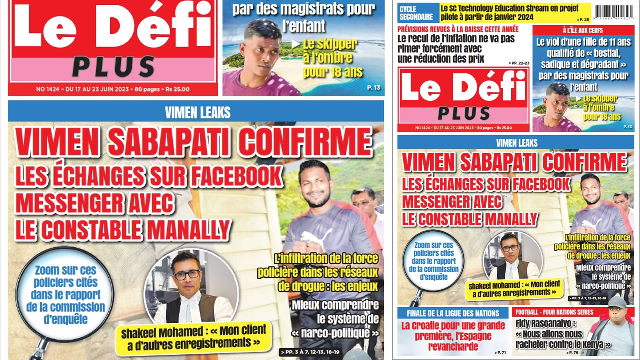 ? Voici la Une du Défi Plus. Le journal est en vente à Rs 25 l'exemplaire aux endroits habituels (supermarchés, boutiques, tabagies, superettes). Bonne lecture !