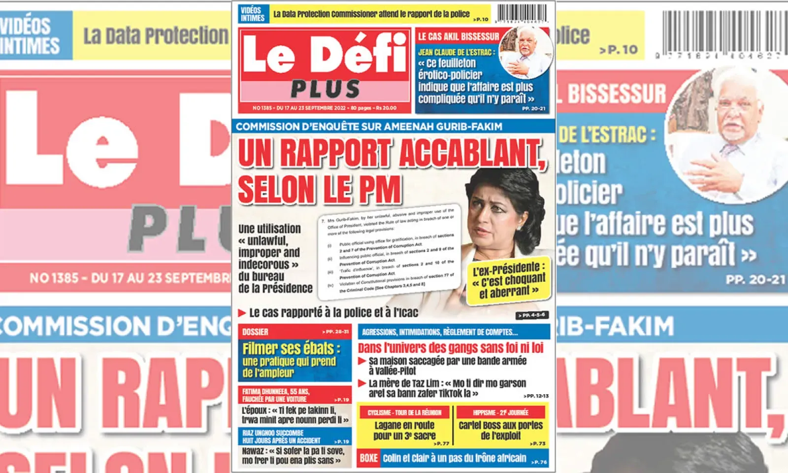 ? Voici la Une du Défi Plus. Le journal est en vente à Rs 20 l'exemplaire aux endroits habituels (supermarchés, boutiques, tabagies, superettes). Bonne lecture !